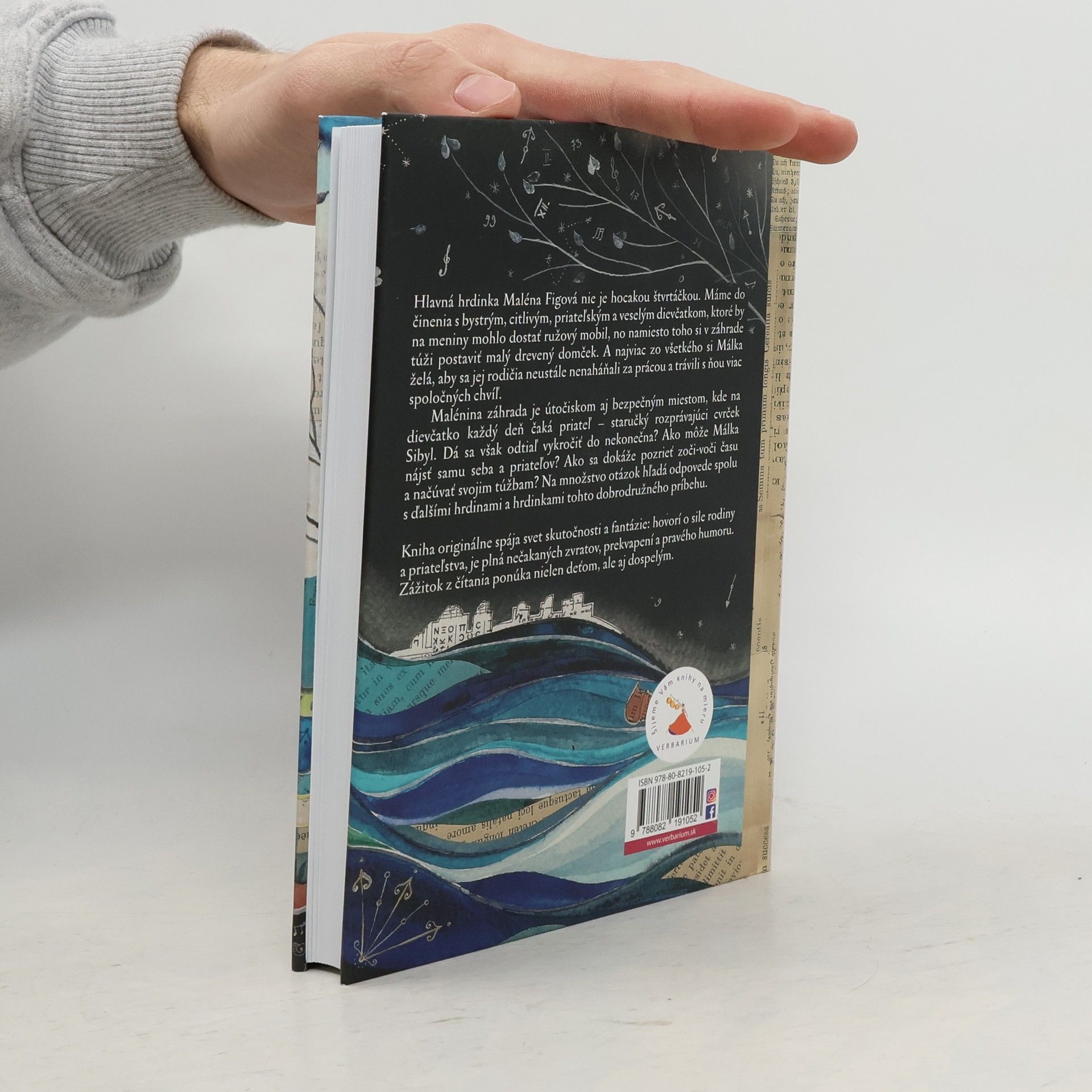 Hlavná hrdinka Maléna Figová nie je hocakou štvrtáčkou. Máme do činenia s bystrým, citlivým, priateľským a veselým dievčatkom, ktoré by na meniny mohlo dostať ružový mobil, no namiesto toho si v záhrade túži postaviť malý drevený domček. A najviac zo všetkého si Málka želá, aby sa jej rodičia neustále nenaháňali za prácou a trávili s ňou viac spoločných chvíľ. Malénina záhrada je útočiskom aj bezpečným miestom, kde na dievčatko každý deň čaká priateľ – staručký rozprávajúci cvrček Sibyl. Dá sa však odtiaľ vykročiť do nekonečna? Ako môže Málka nájsť samu seba a priateľov? Ako sa dokáže pozrieť zoči-voči času a načúvať svojim túžbam? Na množstvo otázok hľadá odpovede spolu s ďalšími hrdinami a hrdinkami tohto dobrodružného príbehu. Kniha originálne spája svet skutočnosti a fantázie: hovorí o sile rodiny a priateľstva, je plná nečakaných zvratov, prekvapení a pravého humoru. Zážitok z čítania ponúka nielen deťom, ale aj dospelým.