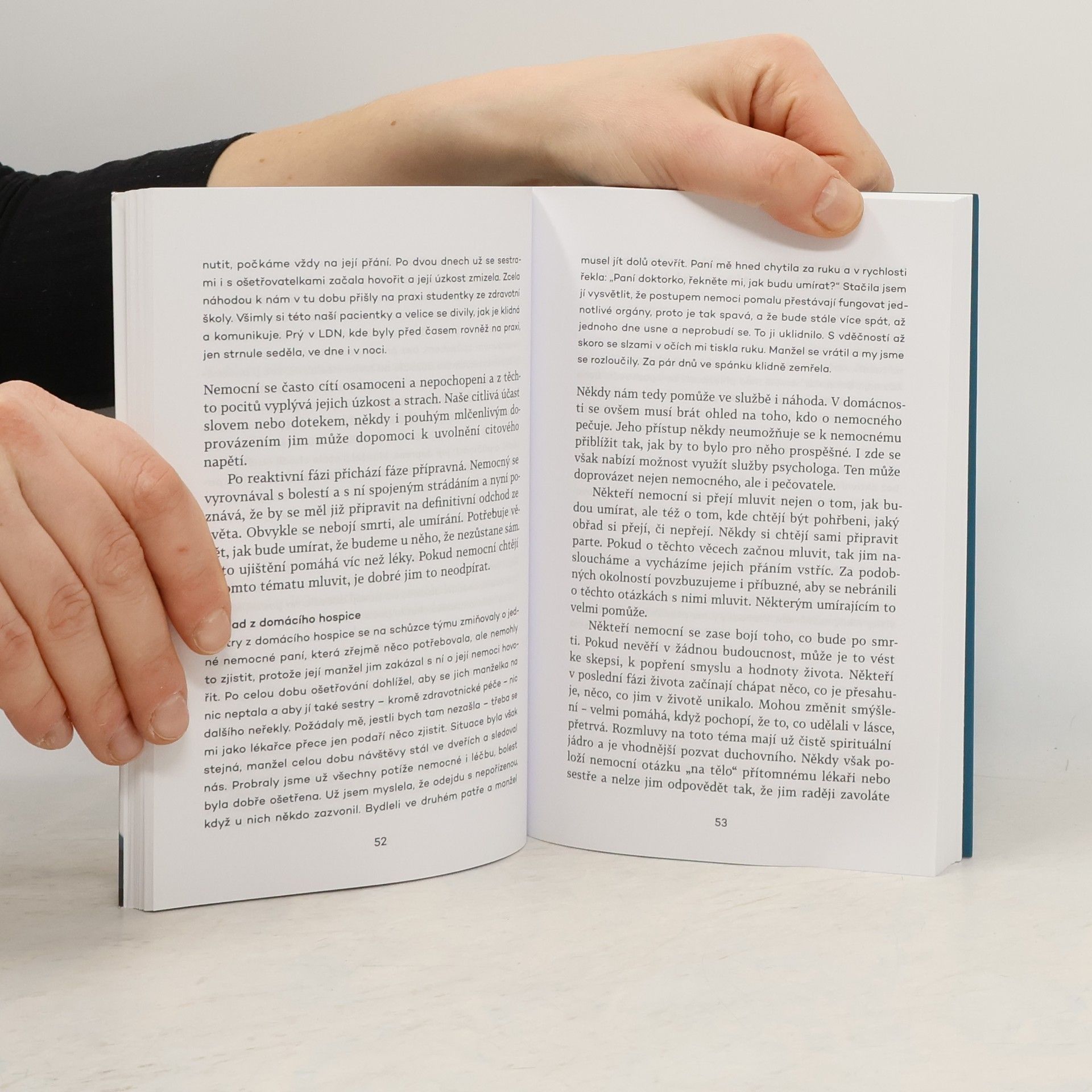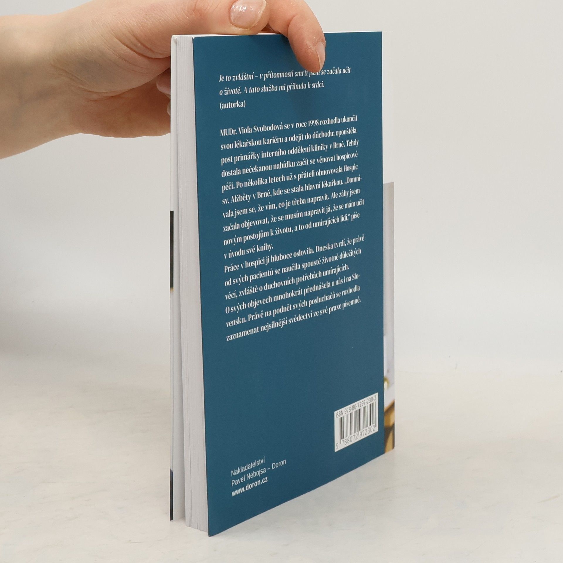 MUDr. Viola Svobodová pracovala jako lékařka na brněnských klinikách celý svůj profesní život. Několik měsíců po odchodu do důchodu dostala nabídku práce v klášterní hospicové stanici: „Netušila jsem, jak obohacující a inspirativní bude každé setkání s nemocnými a jak plodné budou rozhovory o jejich duchovních potřebách. Byla jsem ohromena účinkem utišené duchovní bolesti a bolelo mě, když jsem se nemohla do zraněné duše nemocného prolomit. O tyto zkušenosti –zápasy, bolesti a radosti se chci s vámi podělit v této knížce.“