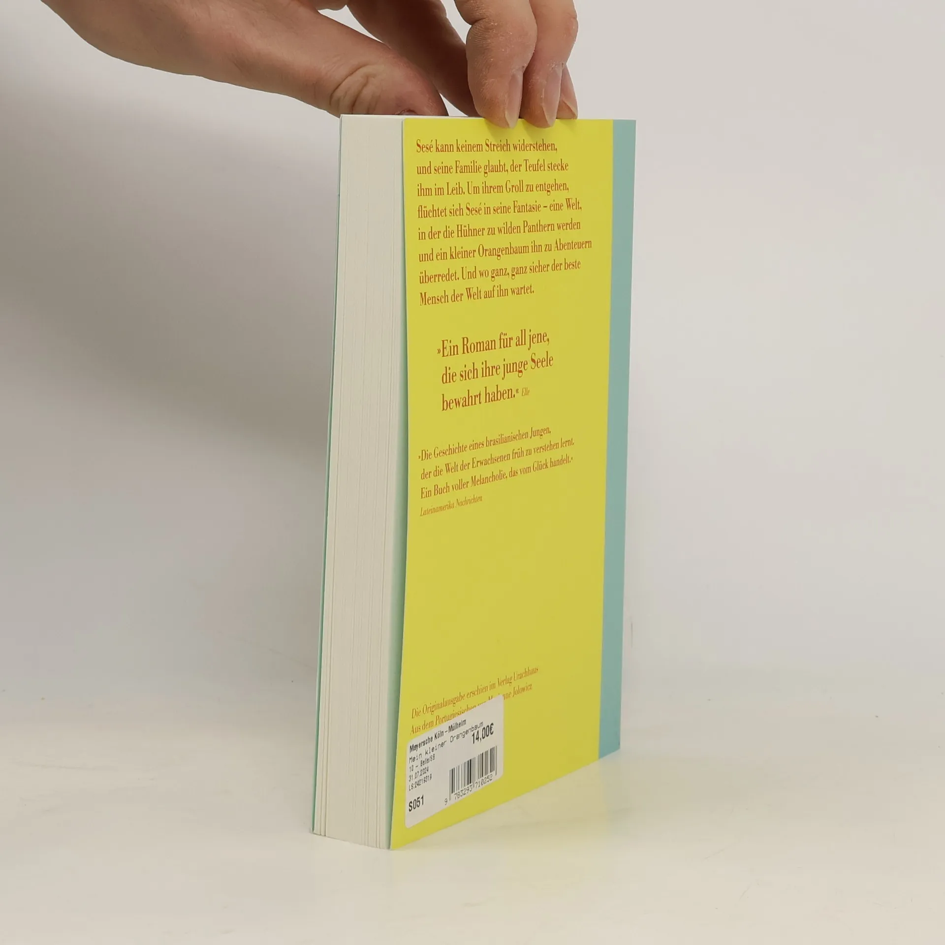 Sesé ist ein wunderlicher kleiner Junge. Immer nimmt er sich fest vor, brav zu sein, aber wie soll man widerstehen, wenn sich die Gelegenheit zu einem herrlichen Streich bietet? Seine Familie glaubt, der Teufel stecke ihm in den Knochen, und will ihm den Schabernack mit allen Mitteln austreiben. Von den Erwachsenen missverstanden, flüchtet Sesé sich in seine eigene Welt – eine Welt, in der die Hühner im Hinterhof zu wilden Panthern werden, die bunten Papierdrachen singend am Himmel tanzen und ein kleiner Orangenbaum ihn zu Abenteuern überredet. Und irgendwo, da ist er sich sicher, wartet der beste Mensch der Welt auf ihn. Mit der weltweit geliebten Geschichte einer Kindheit schuf José Mauro de Vasconcelos einen zeitlosen Klassiker und eine Ode an die Macht der Freundschaft und der Fantasie.