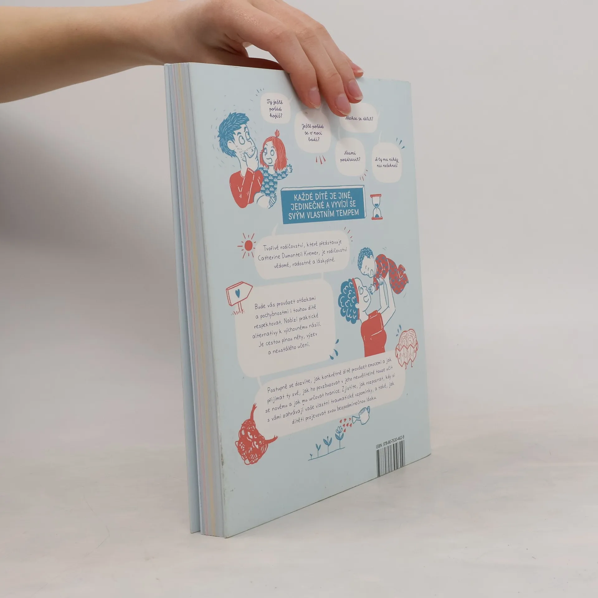 Tvořivé rodičovství, které představuje Catherine Dumonteil Kremer, je rodičovství vědomé, radostné a láskyplné. Bude vás provázet otázkami a pochybnostmi i touhou dítě respektovat. Nabízí praktické alternativy k výchovnému násilí. Je cestou plnou něhy, výzev a neustálého učení. Postupně se dozvíte, jak konkrétně dítě provázet emocemi a jak přijímat ty své, jak ho povzbuzovat v jeho neuvěřitelné touze učit se novému a jak mu určovat hranice. Zjistíte, jak rozpoznat, kdy si s vámi zahrávají vaše vlastní traumatické vzpomínky, a také, jak dítěti projevovat svou bezpodmínečnou lásku.