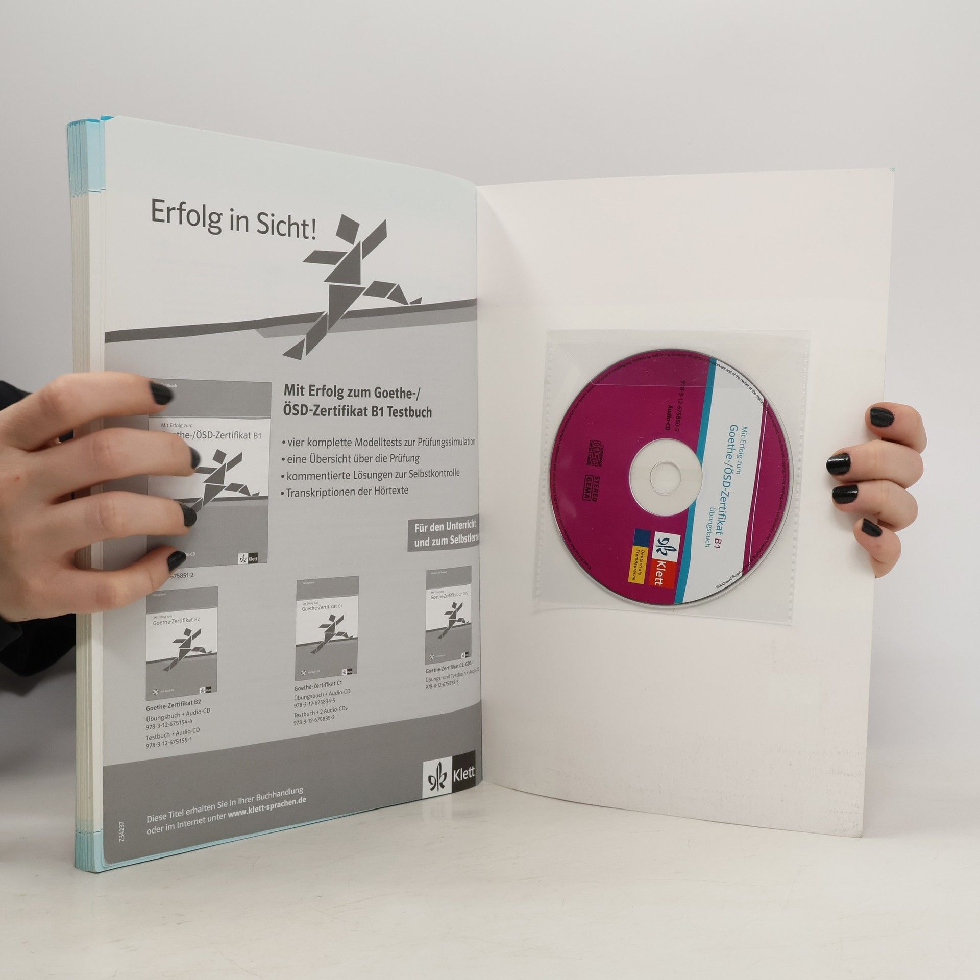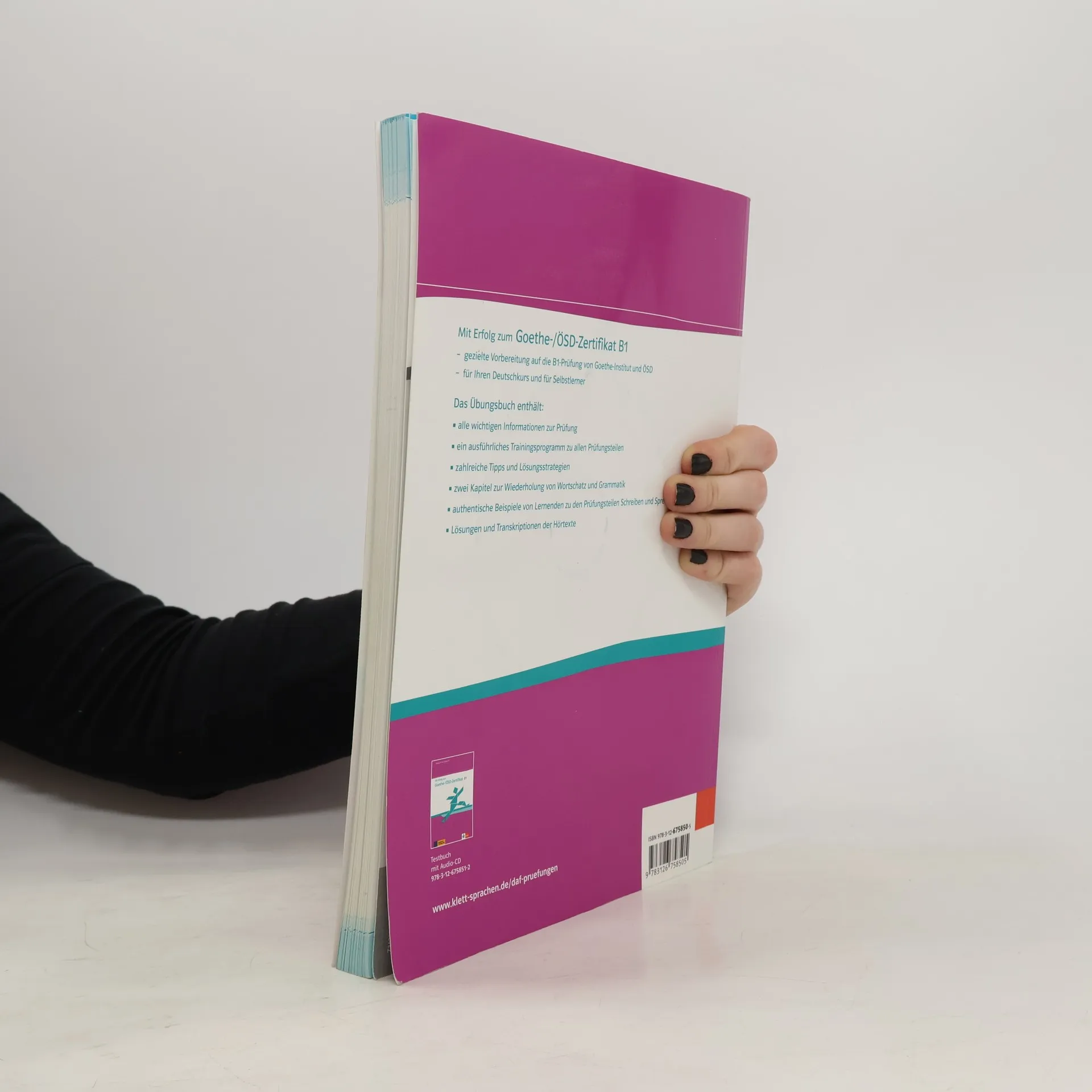 Mit Erfolg zum Goethe-/ÖSD-Zertifikat B1 Gezielte Vorbereitung auf die B1-Prüfung von Goethe-Institut und ÖSD Für Ihren Deutschkurs und für Selbstlerner Das Übungsbuch enthält: alle Informationen zur Prüfung ein ausführliches Trainingsprogramm zu allen Prüfungsteilen zahlreiche Tipps und Lösungsstrategien zwei Kapitel zur Wiederholung von Wortschatz und Grammatik authentische Beispiele von Lernenden zu den Prüfungsteilen Schreiben und Sprechen Lösungen und Transkriptionen der Hörtexte