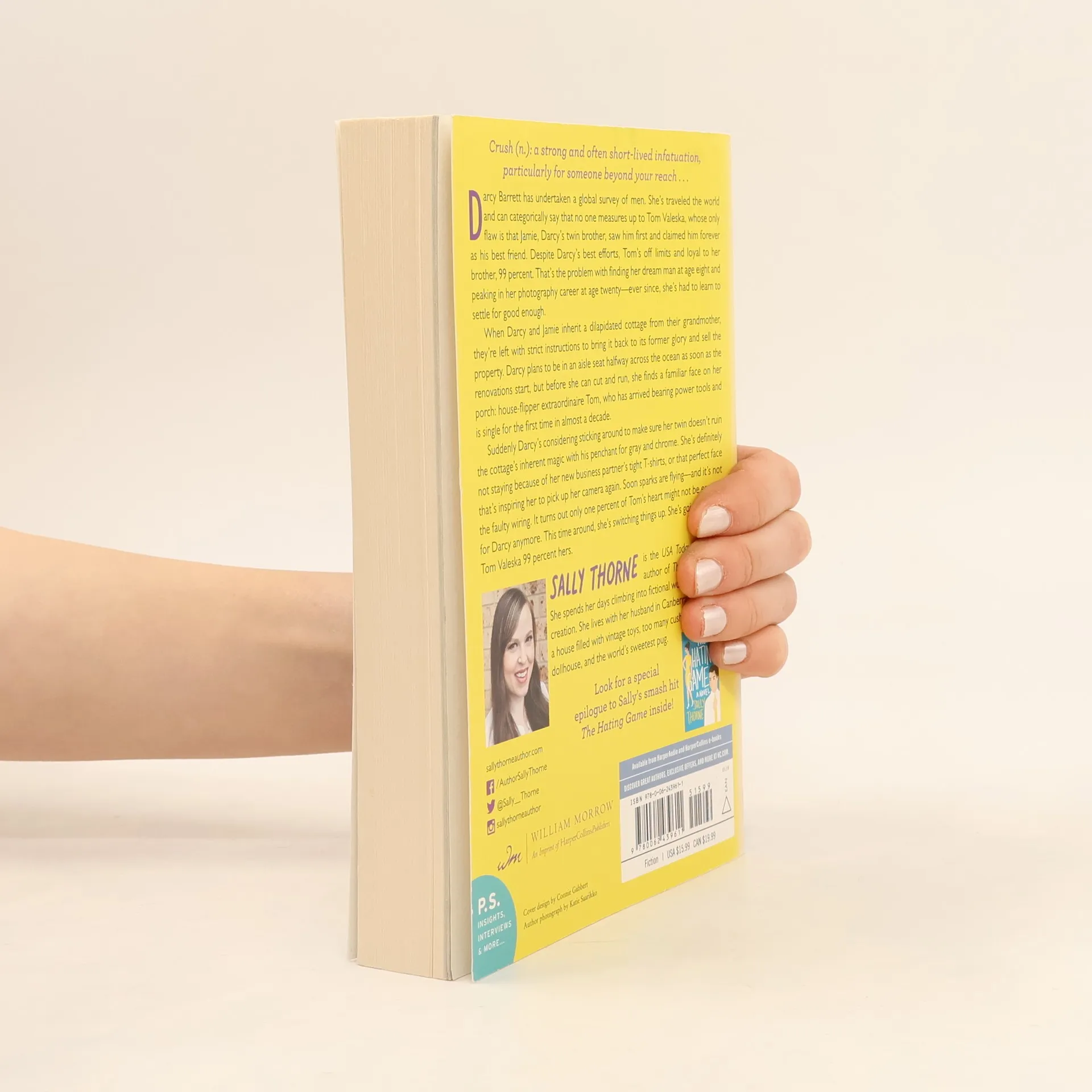 Readers and critics have celebrated USA Today bestselling author Sally Thorne’s debut novel, which sold in over 20 countries. Now, she returns with a delightful romantic comedy featuring a twin sister and brother vying for an inheritance, complicated by a sexy best friend. Darcy Barrett has conducted a global survey of men and concludes that none compare to Tom Valeska, her brother Jamie's best friend. Unfortunately, Tom is mostly loyal to Jamie, leaving Darcy to settle for less since she found her dream man at eight and peaked in her photography career at twenty. When Darcy and Jamie inherit a dilapidated cottage from their grandmother, they must restore it and sell it. Darcy plans to escape as renovations begin, but her plans change when Tom, now single and a house-flipper, shows up at her door with tools in hand. Faced with her brother's questionable design choices, Darcy finds herself drawn to Tom's charm and looks, reigniting her passion for photography. As sparks fly, she realizes that the one percent of Tom’s heart that was once reserved for Jamie may not be enough anymore. This time, Darcy is determined to claim Tom Valeska for herself.