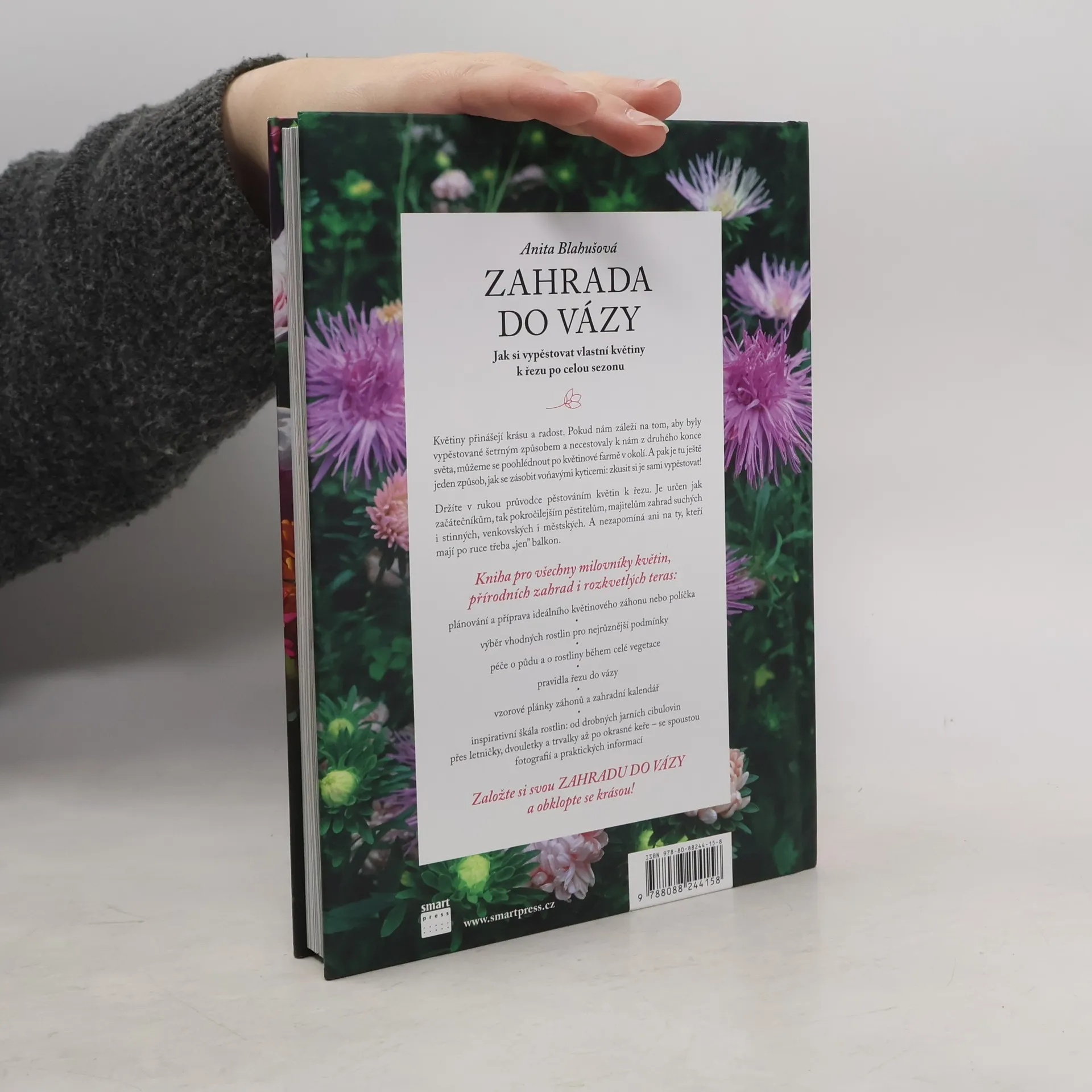 Co může být krásnější ozdobou domova či milejším dárkem než voňavá a bohatá kytice čerstvých květin? Nová kniha zkušené autorky a zahradnice přináší podrobný průvodce pěstováním květin k řezu: nádherných, pestrých, lokálně a ekologicky vypěstovaných vlastníma rukama. Je určena jak začátečníkům, tak pokročilým pěstitelům, a to pro různé typy zahrad, včetně balkonů. Naučíme se vše potřebné k úspěšnému pěstování květin a péči o ně, ať už v půdě, nebo ve váze: jak plánovat a připravit ideální květinový záhon, jak se o rostliny správně starat, jaká jsou pravidla řezu do vázy a základy květinové vazby. Kniha obsahuje vzorové plánky záhonů a přehledy pro různé typy pozemků či celoroční kalendář. Profilová část představuje široký výběr rostlin vhodných k řezu, od jara až do zimy, včetně drobných jarních cibulovin, letniček, dvouletek, trvalek a okrasných stromů a keřů. Osvědčené i překvapivé rostliny jsou popsány s ohledem na jejich potřeby pro růst a kvetení, specifika řezu a trvanlivost. Kniha je bohatá na krásné fotografie, což ji činí nejen praktickým manuálem, ale také pohlazením pro duši.