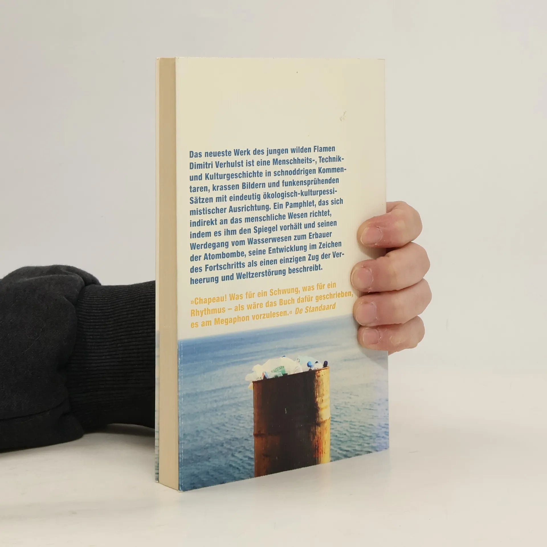 Der neue Geniestreich des wilden Flamen: die Geschichte der Menschheit als bitterböse Satire. Das neueste Werk des jungen wilden Flamen aus den wallonischen Bergen ist eine Menschheits-, Technik- und Kulturgeschichte in schnoddrigen Kommentaren, krassen Bildern und funkensprühenden Sätzen. Ein Pamphlet, das dem Menschen den Spiegel vorhält und seinen Werdegang vom Wasserwesen zum Erbauer der Atombombe, seine Entwicklung im Zeichen des Fortschritts als einen einzigen Zug der Verheerung und Weltzerstörung beschreibt.
