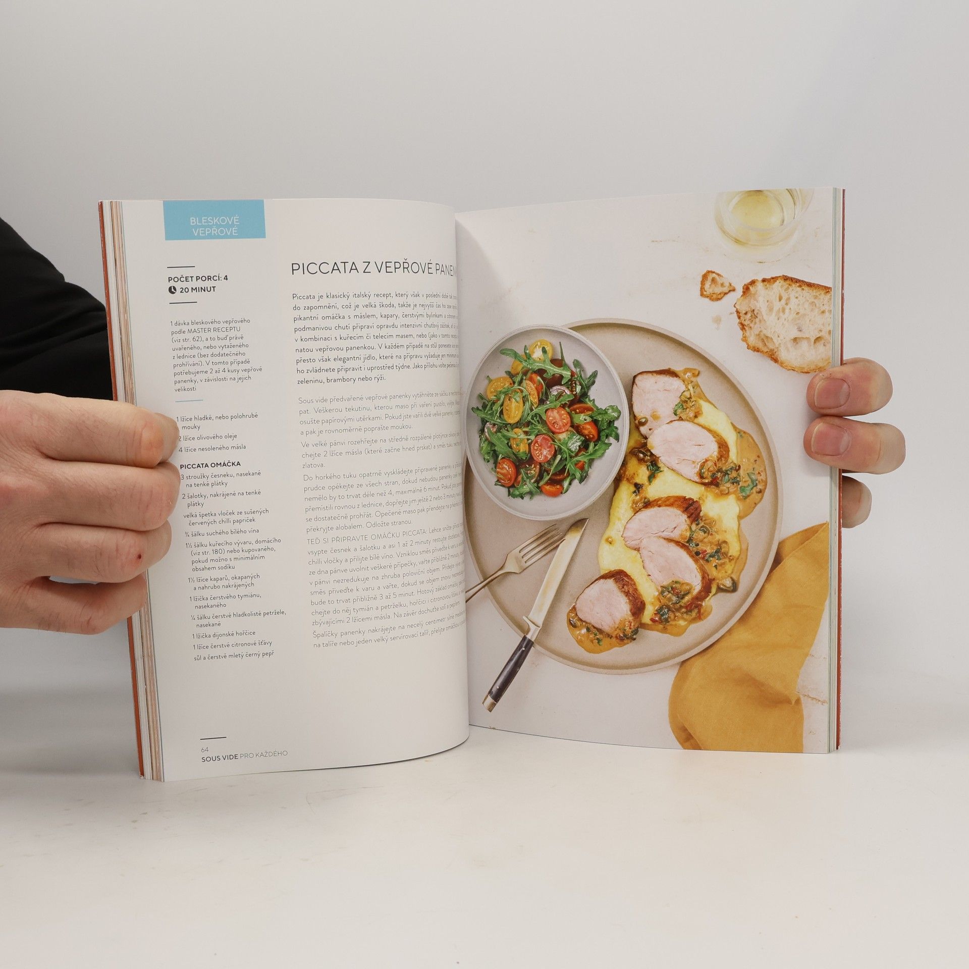 Lisa Fetterman je vytížená ředitelka společnosti a současně maminka dvou malých dětí. Ve své druhé knize Sous vide pro každého názorně předvádí elegantní řešení hlavolamu, jak uprostřed náročného pracovního týdne dopřát rodině kvalitní, a pokud možno teplou večeři. Seznamte se s technologií sous vide vaření Lisa nám představuje téměř kouzelnou technologii sous vide vaření, která se ovšem dá velmi jednoduše využít i mimo prostředí luxusních restaurací. Pomocí ponorného sous vide cirkulátoru určeného pro použití v běžných domácích podmínkách si můžeme bez námahy a s jen minimální časovou investicí předpřipravit domácí „polotovary“, z nichž pak v průběhu týdne podle jednoho ze spousty rychlých receptů v pár minutách vytvoříme lahodné jídlo. Skvělý pomocník při přípravě jekéhokoliv jídla V jednotlivých tematicky zaměřených kapitolách kniha vždy nejdřív představí takzvaný master recept, neboli základní postup pro sous vide úpravu konkrétní suroviny, který následuje několik spin-off receptů, které tyto „domácí polotovary“ využívají jako základ pro kompletní pokrm. Pomocí vaření ve vodní lázni si tak můžeme bez námahy a rizika neúspěchu připravit například Chřest Benedict, Opilé nudle, Marockou misku s quinoou, Čokoládový parfait s malinami nebo Dokonalé zmrzlinové sendviče. Sous vide pro každého vám bude skvělým pomocníkem při přípravě jakéhokoliv jídla!