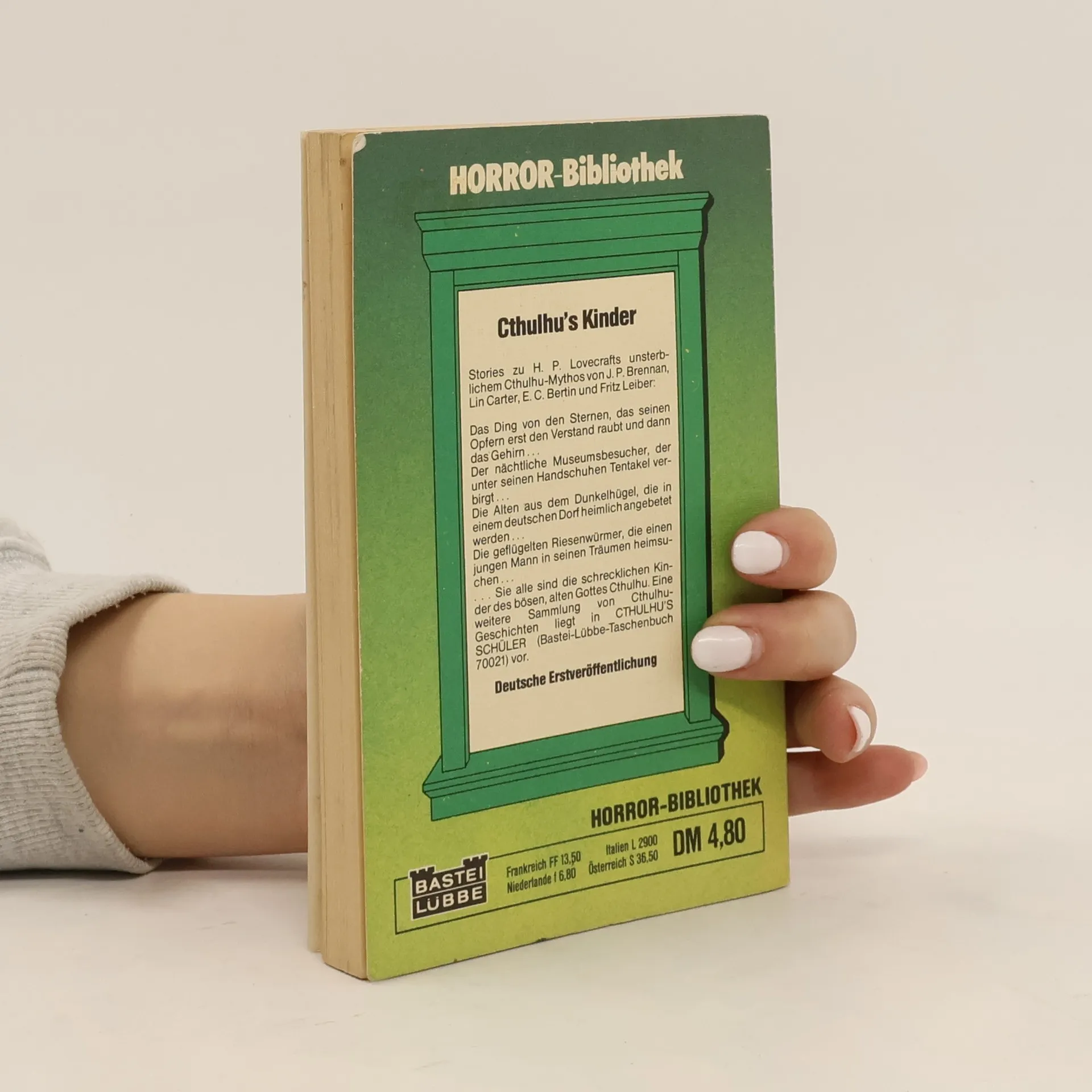 Stories zu H.P. Lovecrafts unsterblichem Cthulhu-Mythos von J.P. Brennan, Lin Carter, E.C. Bertin und Fritz Leiber:- Das Ding von den Sternen, das seinen Opfern erst den Verstand raubt und dann das Gehirn...- Der nächtliche Museumsbesucher, der unter seinen Handschuhen Tentakel verbirgt...- Die Alten aus dem Dunkelhügel, die in einem deutschen Dorf heimlich angebetet werden...- Die geflügelten Riesenwürmer, die einen jungen Mann in seinen Träumen heimsuchen...