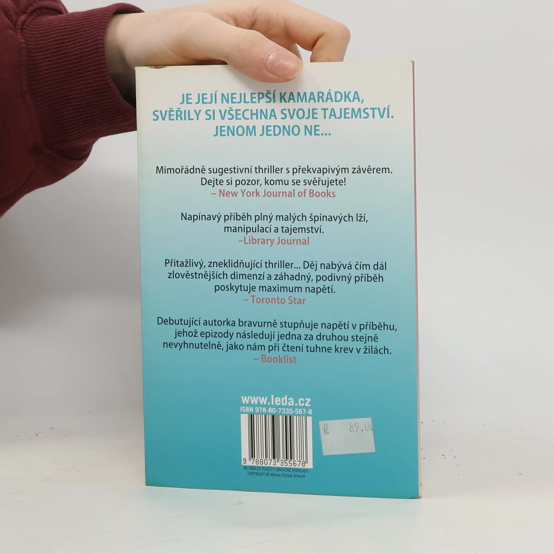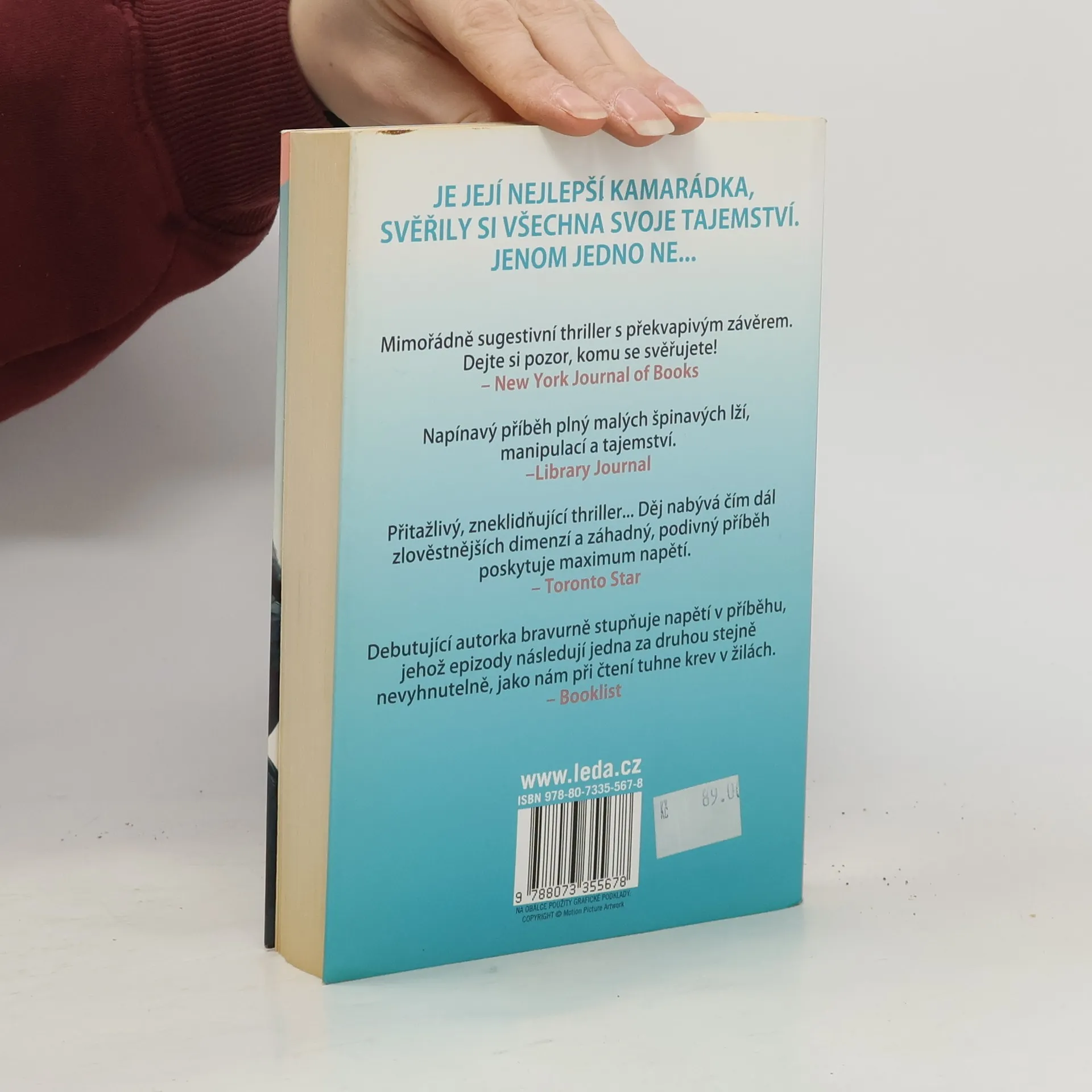 JE JEJÍ NEJLEPŠÍ KAMARÁDKA, SVĚŘILY SI VŠECHNA SVOJE TAJEMSTVÍ. JENOM JEDNO NE… Emily je okouzlující žena s oslnivou kariérou v módním oboru a s pohledným manželem Seanem tvoří pár, kterému leckdo závidí. Zároveň je zodpovědná a milující matka. Její kamarádka Stephanie, jejíž manžel před několika lety tragicky zahynul při autonehodě, se stará o malého syna a úzkostné pocity ventiluje na svém blogu určeném komunitě matek s malými dětmi. Všechno začalo drobnými laskavostmi. “Mohla bys vyzvednout Nickyho ze školy?” prosila Emily už několikrát svoji nejlepší kamarádku. A Stephanie je pokaždé ráda, že může být přítelkyni užitečná. Jednoho dne si ale Emily pro syna nepřijde, nezvedá mobil, neodpovídá na textovky. Nejistota trvá několik měsíců, až se v jezeře najde tělo utonulé ženy, kterou policie identifikuje jako Emily. Případ je uzavřen jako sebevražda… jenomže Stephanie náhodou narazila na důvod k pochybnostem a nejistota ji svírá čím dál naléhavěji. Neví Sean o Emilyině zmizení víc, než přiznává? Jak dobře znala svoji nejlepší kamarádku? Co ví o jejím dřívějším životě? Neudělala chybu, když se jí svěřila s tím, na co by ze své minulosti nejraději zapomněla? Co když se za kamarádstvím skrývá záludný, detailně promyšlený ďábelský plán? ZNÁ VŠECHNA VAŠE TAJEMSTVÍ... A PROTO MŮŽE BÝT NEBEZPEČNÁ
