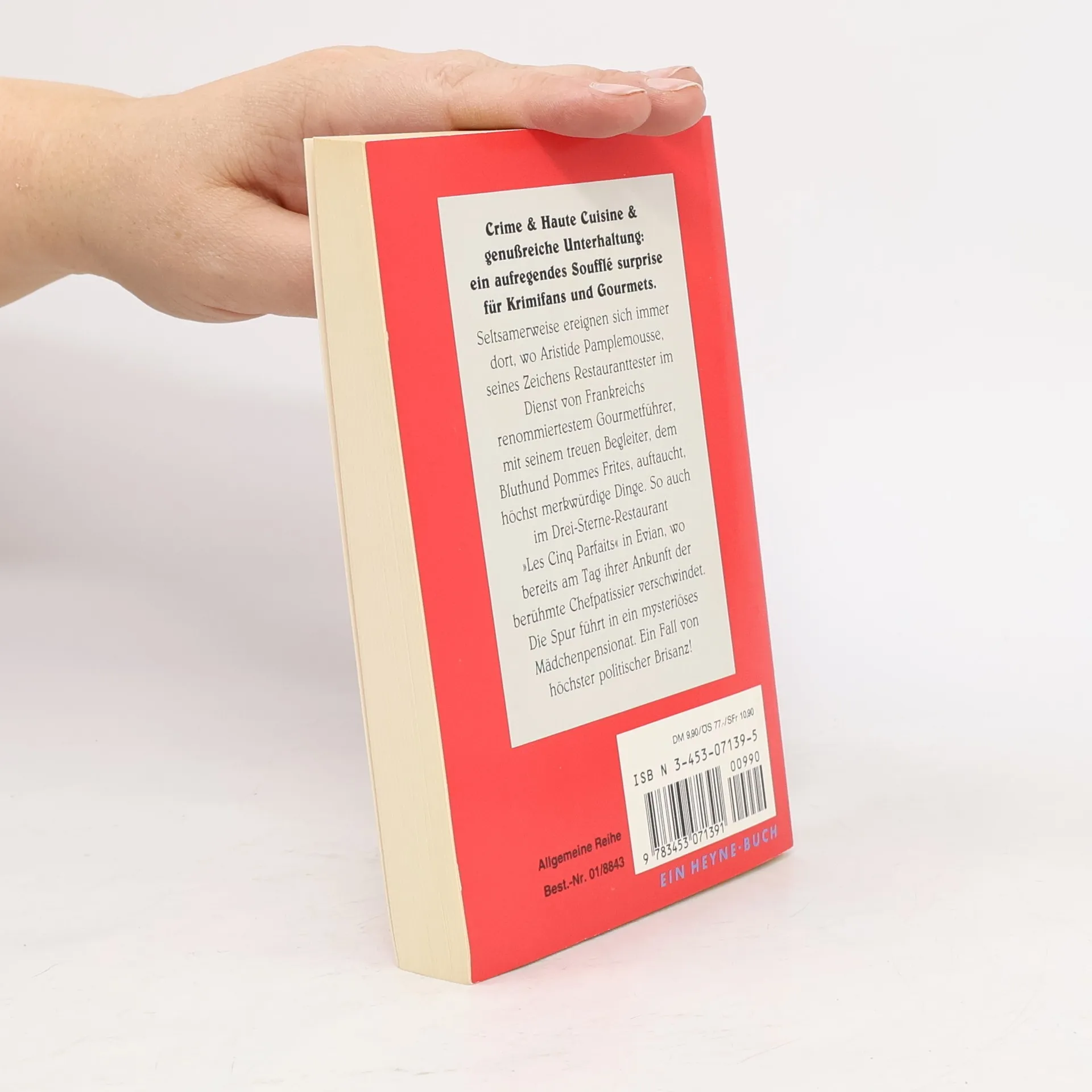 Ein Kriminalroman für Feinschmecker mit vielen Rezepten von Paul Bocuse, Michel Guérard, Vincent Klink, Pierre & Jean Troisgros und Roger Vergé. Nachdem die Karriere von Aristide Pamplemousse bei der Parise Sûreté ein unrühmliches Ende gefunden hat, begibt er sich als Restaurant-Inspektor in die Dienste von Frankreichs ältestem und renommiertesten Restaurantführer Le Guide. Seltsamerweise tragen sich immer dort, wo Pamplemousse in Begleitung seines Partners Pommes Frites, einem Bluthund mit besonders ausgeprägtem Geschmackssinn, auftaucht, merkwürdige Dinge zu. Im ersten Band der ‘Gastronomic Mysteries’ verschlägt es die beiden nach Evian. Am Tag ihrer Ankunft verschwindet der Chef-Patissier und damit dessen berühmteste Kreation, das Soufflé Surprise, von der Speisekarte. Dies wiederum ist die Lieblingsspeise eines arabischen Ölpotentaten, dessen Ankunft unmittelbar bevorsteht und von dessen Goodwill Frankreichs Ölversorgung abhängt. Doch seine Vorliebe für Süßigkeiten, blonde Engländerinnen und Chateau d’Yquem 1948 werden dem Bösewicht zum Verhängnis, als Pamplemousse seltsame Verbindungen zwischen allen dreien feststellt…