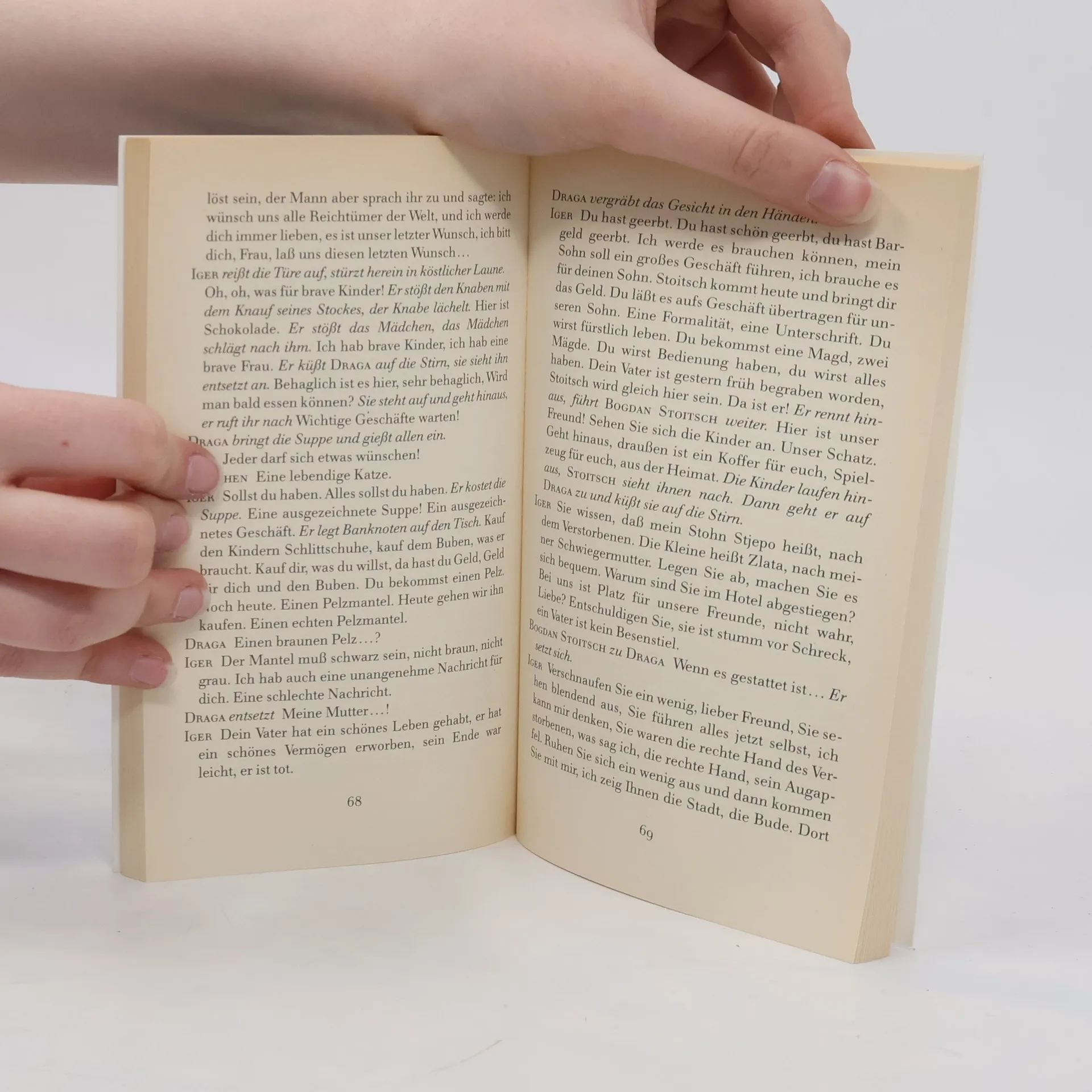 Das Drama einer Ehehölle: Erst raubt Iger seiner jungen Frau ihr Vermögen, dann treibt er sie in den Wahnsinn. Aus dem angesehenen Bürger wird ein Menschenfresser, ein »Oger«. Veza Canettis Stück ist, ähnlich wie Ödön von Horvaths »Geschichten aus dem Wienerwald«, eine bitterböse Milieustudie aus dem Wiener Kleinbürgertum. Über die Urauffühung am Zürcher Schauspielhaus fast sechzig Jahre nach seiner Niederschrift schrieb ›Die Zeit‹: »Unmöglich, die vielen Gehässigkeiten, Sarkasmen, witzigen Dialoge zu beschreiben, die Veza Canetti auf knappem Raum entfaltet.«