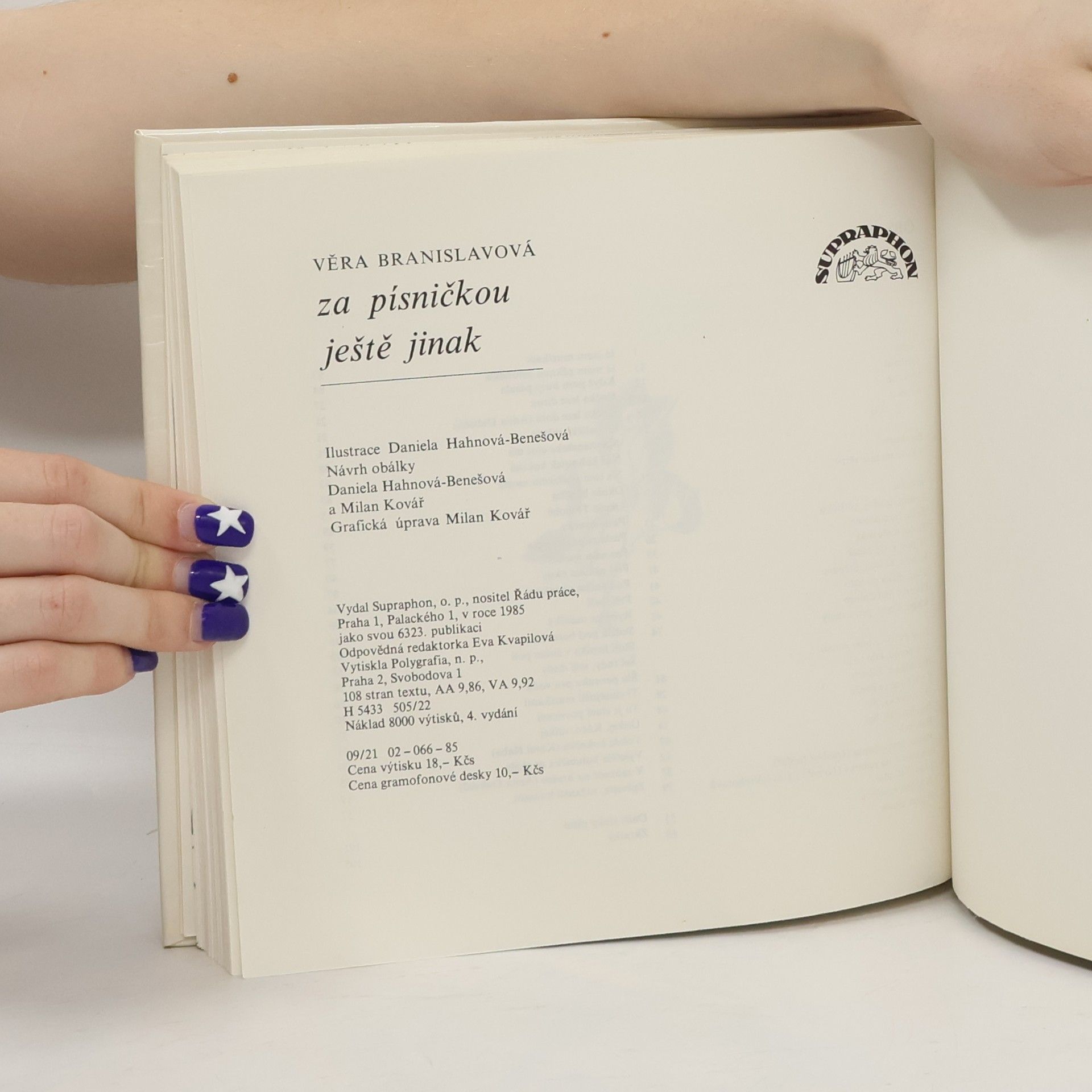 Písničky. Vydal Supraphon, Praha 1985. Graficky upravil Milan Kovář. Čtvrté vydání, stran 108. Původní pevná vazba.