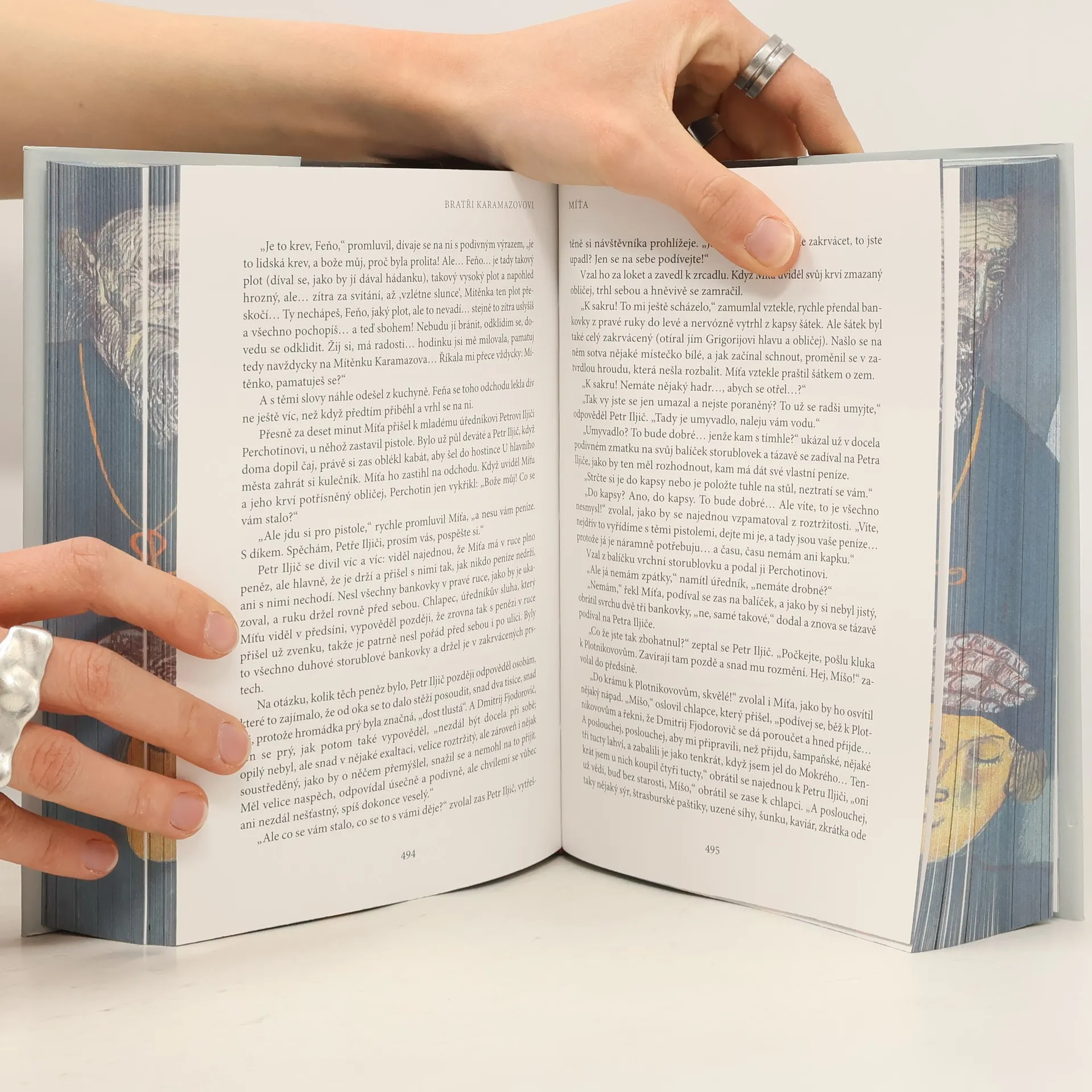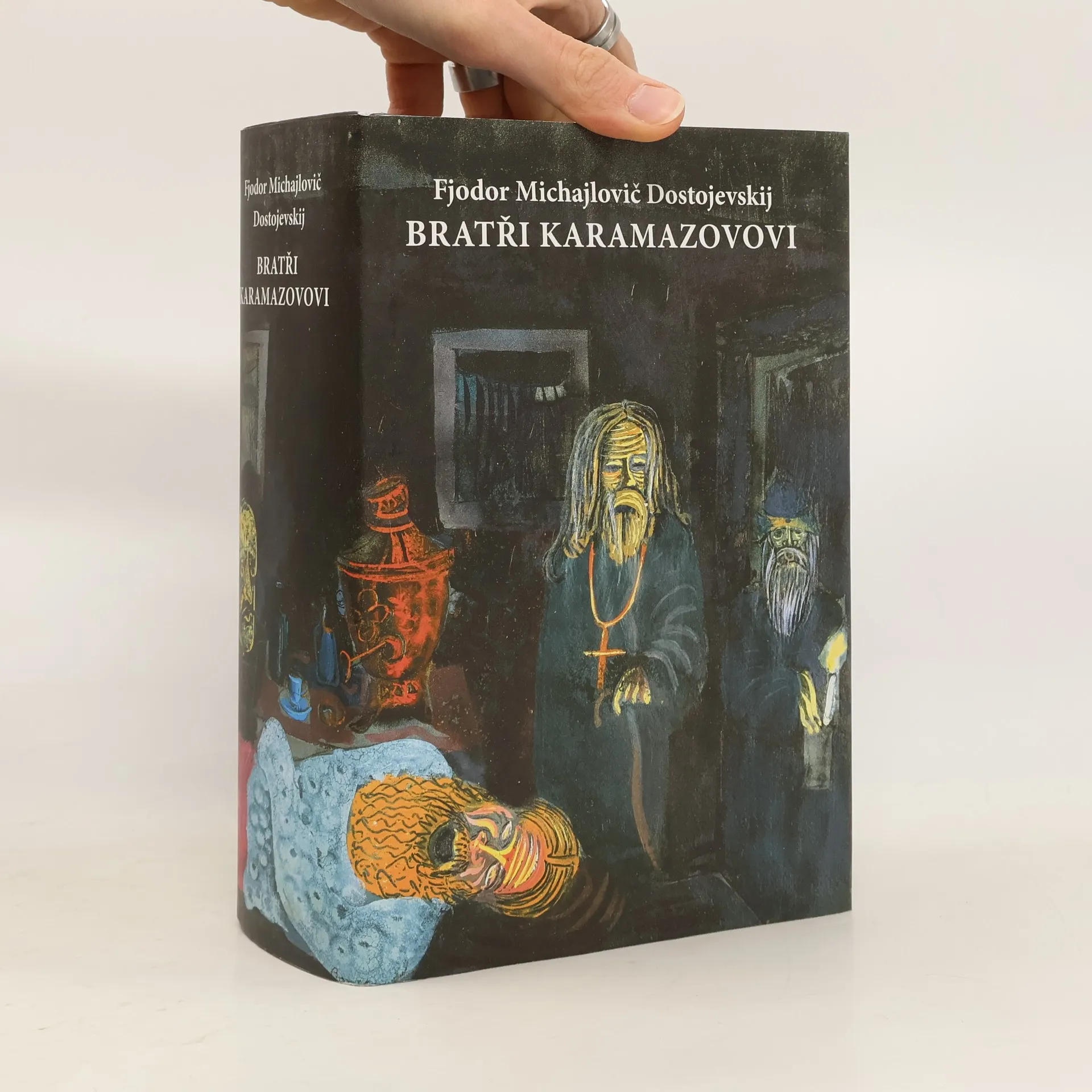 Ilustrované vydání jednoho z nejvýznamnějších děl zlatého věku ruské literatury obsahuje desítky dosud nepublikovaných obrazů ruského malíře Borise Grigorjeva. Dostojevského román, který poprvé vyšel česky v roce 1894, byl brzy po svém vydání považován za vrchol světové literatury a dodnes patří k nejčtenějším dílům. Na pozadí osudu rodiny Karamazovových, kde je nejstarší syn Dimitrij obviněn z otcovraždy, Dostojevskij zkoumá klíčové filozofické otázky lidstva. Toto vydání je obohaceno unikátní sérií šedesáti ilustrací Grigorjeva, významného ruského malíře první poloviny dvacátého století, jehož díla jsou součástí mnoha muzeí v Rusku i na Západě. Grigorjev byl známý i v meziválečném Československu, kde měl svou první výstavu v roce 1926. Jeho monumentální polyptych Tváře světa byl zakoupen československým státem a dnes se nachází v Národní galerii v Praze. Grigorjev pracoval na karamazovském cyklu v letech 1916 až 1932, ačkoliv projekt ilustrovaného vydání nebyl nikdy realizován. Cyklus, zahrnující 58 kvašů, akvarelů a kreseb, byl vystaven v roce 1933 v New Yorku a poté zůstal široké veřejnosti neznámý. Dnes ilustrované vydání obsahuje přes osmdesát Grigorjevových obrazů, včetně dalších děl tematicky spřízněných s ruskými náměty.