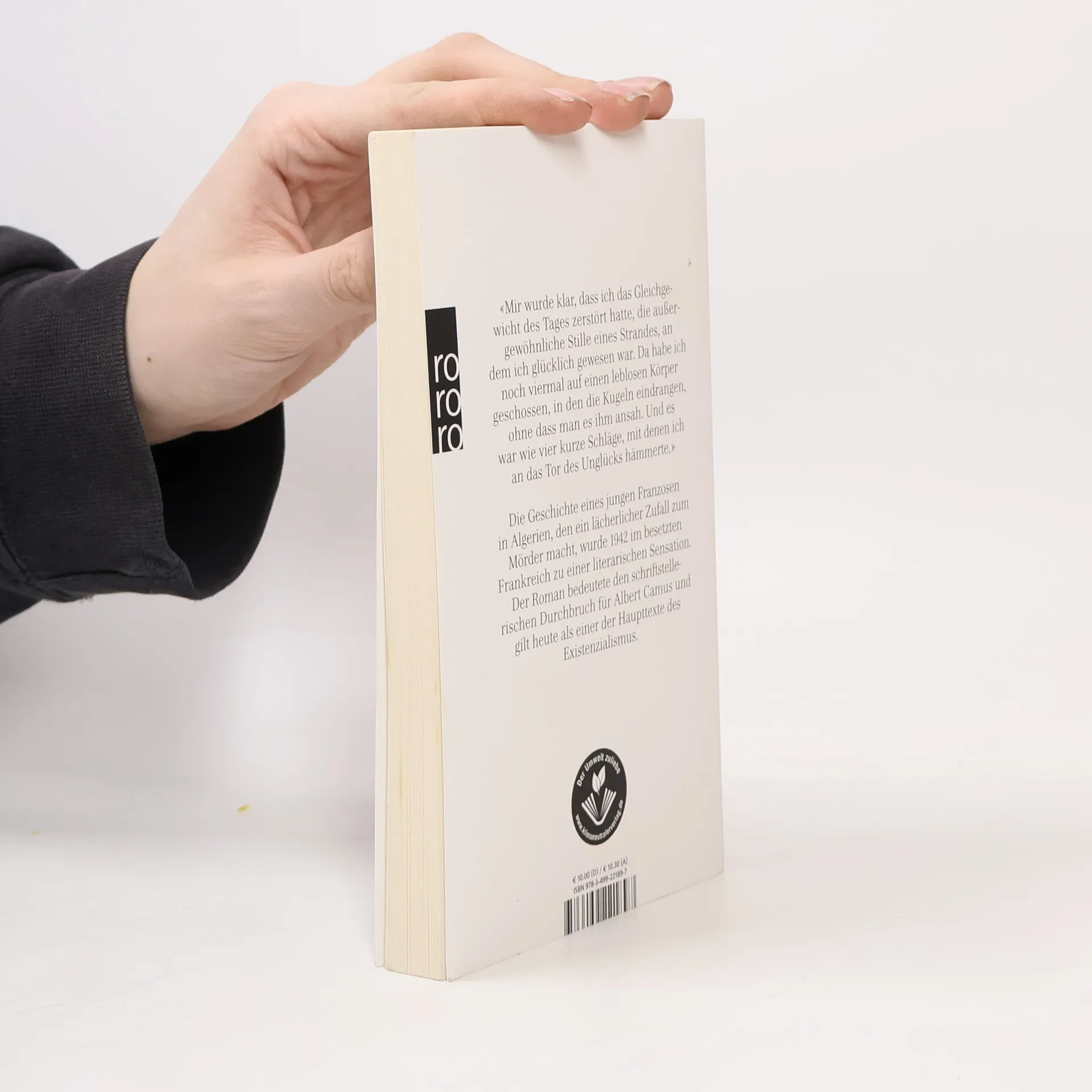 «Mir wurde klar, dass ich das Gleichgewicht des Tages zerstört hatte, die außergewöhnliche Stille eines Strandes, an dem ich glücklich gewesen war. Da habe ich noch viermal auf einen leblosen Körper geschossen, in den die Kugeln eindrangen, ohne dass man es ihm ansah. Und es war wie vier kurze Schläge, mit denen ich an das Tor des Unglücks hämmerte.» Die Geschichte eines jungen Franzosen in Algerien, den ein lächerlicher Zufall zum Mörder macht, wurde 1942 im besetzten Frankreich zu einer literarischen Sensation. Der Roman bedeutete den schriftstellerischen Durchbruch für Albert Camus und gilt heute als einer der Haupttexte des Existenzialismus.