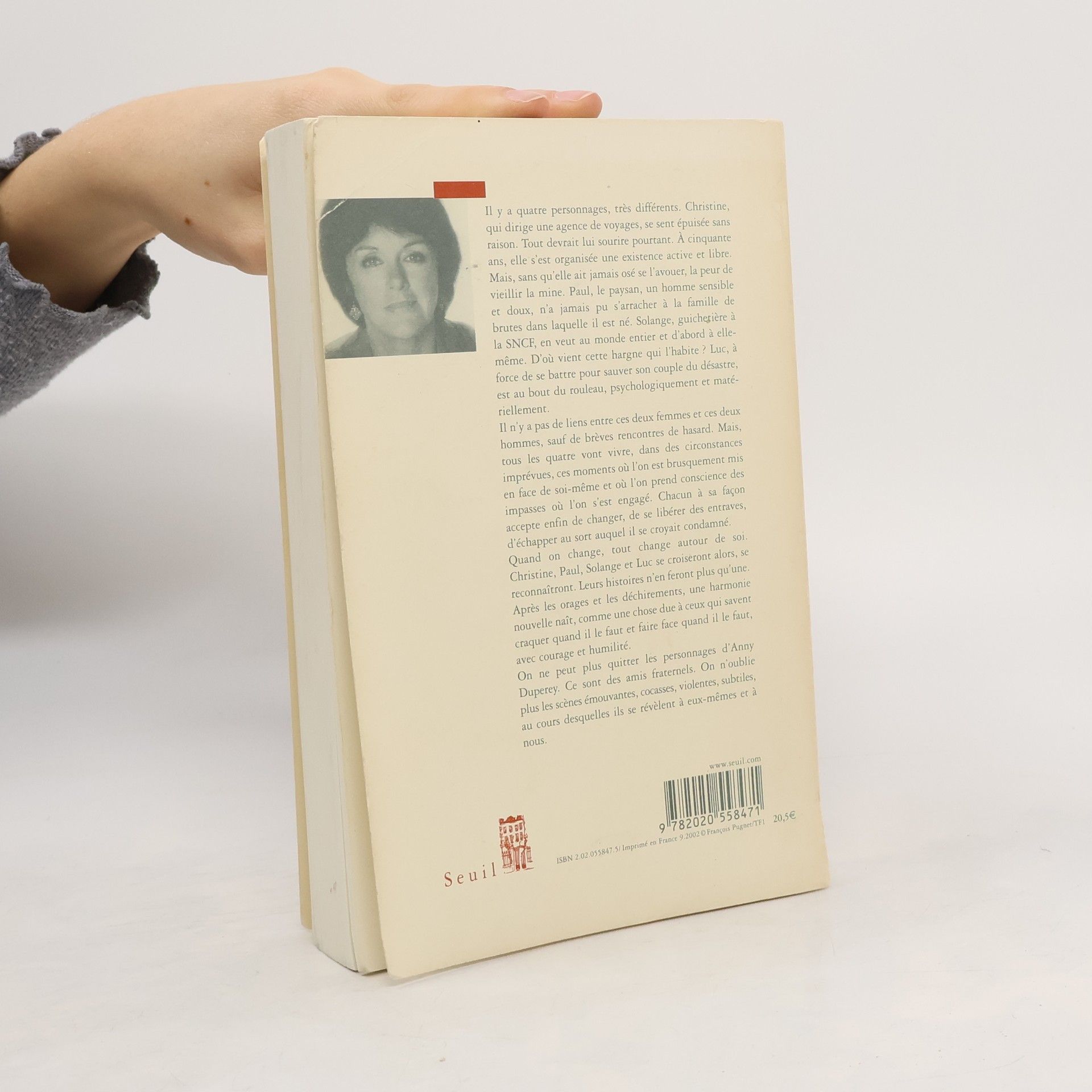Deux femmes, deux hommes qui n’ont aucun lien entre eux, sinon de brèves rencontres de hasard. Christine, la cinquantaine, s’est arrangée une vie aisée et tranquille. Dans sa maison du Berry, elle est tout à coup frappée au coeur par le néant de son existence. Jean est un paysan qui s’abrutit de travail, frémissant d’une sensibilité que lui-même ne comprend pas. Solange, une employée de la SNCF, va découvrir lors d’un voyage organisé une étrange clocharde qui la bouleversera. C’est aussi en voyage, en Hongrie, que Luc, conduit à une résignation désespérée par une femme destructrice, trouvera le courage de réagir. Leurs destins se croiseront alors que chacun croyait être arrivé au bout de sa route. Le bonheur viendra à eux, inattendu et pourtant inscrit dans leur histoire. On n’oublie plus les scènes émouvantes, cocasses, violentes, subtiles, au cours desquelles ces personnages singuliers se révèlent à eux mêmes et à nous.