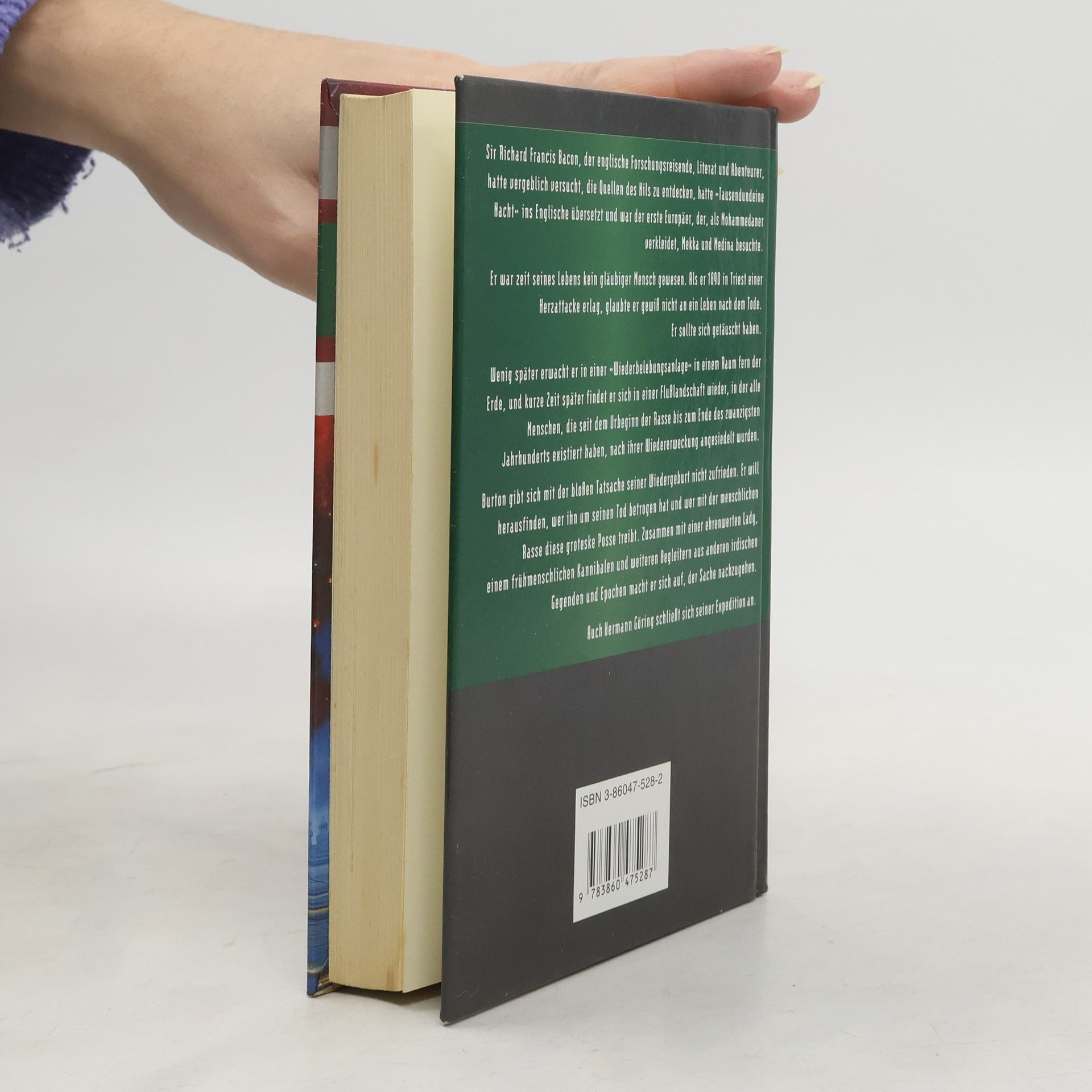 Sir Richard Francis Burton, der englische Forschungsreisende, Literat und Abenteurer, hatte vergeblich versucht, die Quellen des Nils zu entdecken, hatte »Tausendundeine Nacht« ins Englische übersetzt und war der erste Europäer, der, als Mohammedaner verkleidet, Mekka und Medina besuchte. Er war zeit seines Lebens kein gläubiger Mensch gewesen. Als er 1890 in Triest einer Herzattacke erlag, glaubte er gewiss nicht an ein Leben nach dem Tode. Er sollte sich getäuscht haben. Wenig später erwacht er in einer »Wiederbelebungsanlage« in einem Raum fern der Erde, und kurze Zeit später findet er sich in einer Flusslandschaft wieder, in der alle Menschen, die seit dem Urbeginn der Rasse bis zum Ende des zwanzigsten Jahrhunderts existiert haben, nach ihrer Wiedererweckung angesiedelt wurden. Burton gibt sich mit der bloßen Tatsache seiner Wiedergeburt nicht zufrieden. Er will herausfinden, wer ihn um seinen Tod betrogen hat und wer mit der menschlichen Rasse diese groteske Posse treibt. Zusammen mit einer ehrenwerten Lady, einem frühmenschlichen Kannibalen und weiteren Begleitern aus anderen irdischen Gegenden und Epochen macht er sich auf, der Sache nachzugehen. Auch Hermann Göring schließt sich seiner Expedition an.