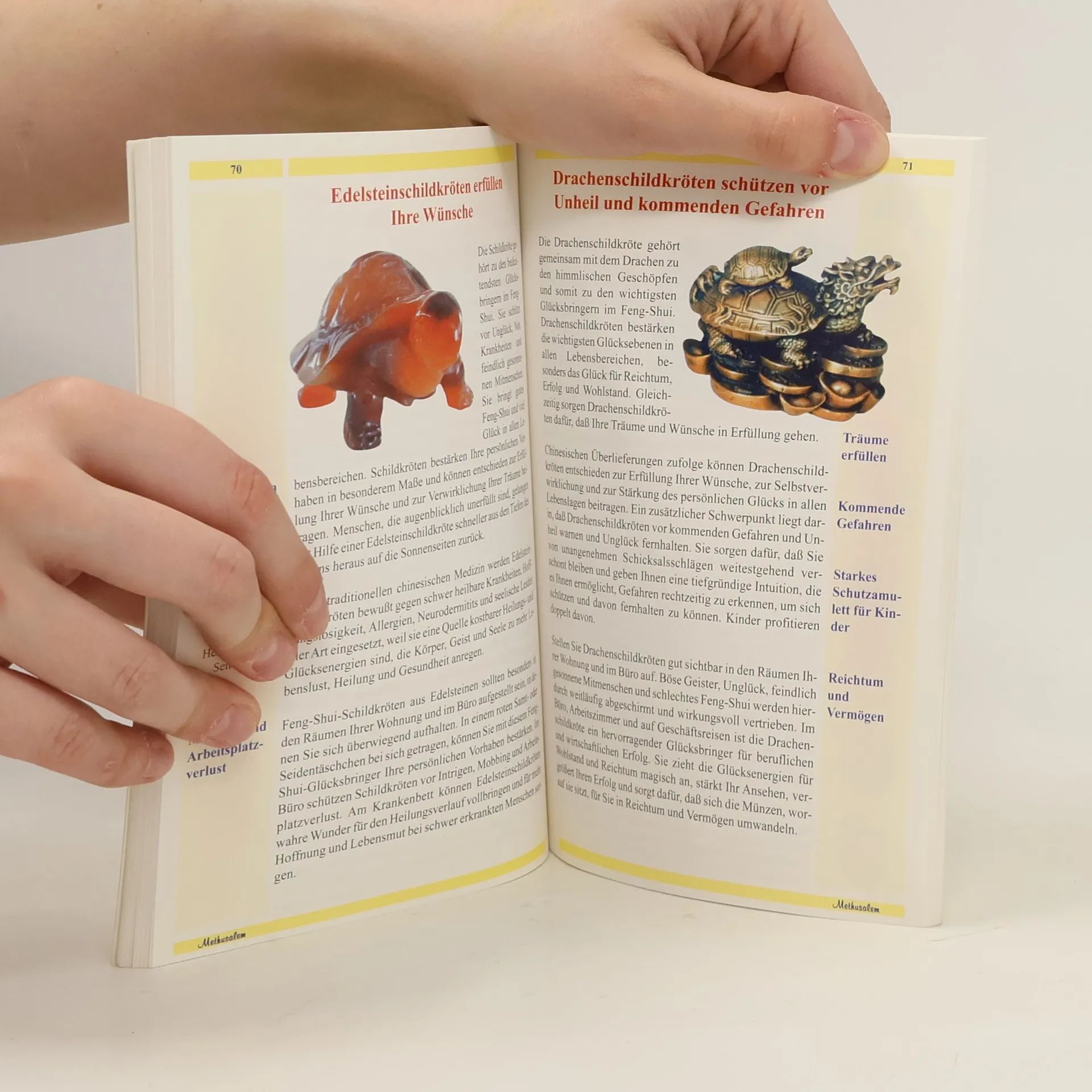 Glück wird in China mit einem guten Feng- Shui und positiven Lebensenergien gleichgesetzt und beruht auf der einfachen Erkenntnis, dass gute Energien auch Gutes bewirken, während schlechte Energien für Unglück und Unheil verantwortlich sind. Im Glücksbringer- Feng- Shui geht es deshalb darum, das persönliche Umfeld so stark mit glückbringenden Energien anzureichern, dass das ganze Leben in all seinen Bereichen überwiegend von Freude, Liebe, Erfolg und Gesundheit erfüllt ist. Die Glücksbringer aus diesem Buch helfen Ihnen dabei.