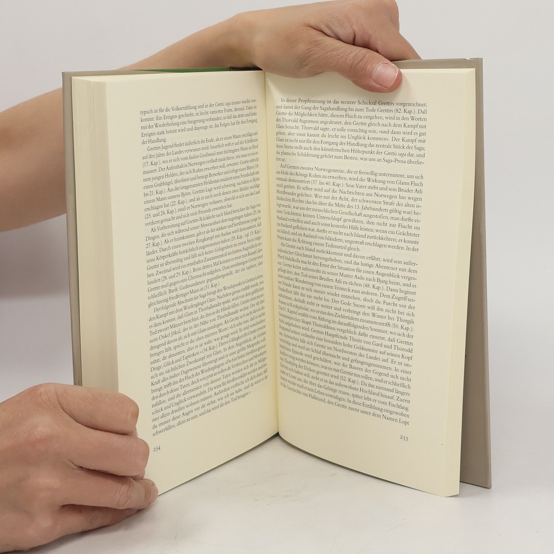 Der Roman erzählt die Lebensgeschichte von Grettir dem Starken. Es ist eine der bekanntesten und gleichzeitig eine der längsten Isländersagas, die von dem unangepaßten und schwierigen Grettir erzählt. Er überlebt nur unter dramatischen Umständen in der unwirtlichen Natur Islands, erwirbt sich mit seiner Körperkraft und seiner Intelligenz großen Ruhm, wird später jedoch geächtet und muß fliehen, bis er schließlich in einem Fjord im Norden des Landes den Tod findet.