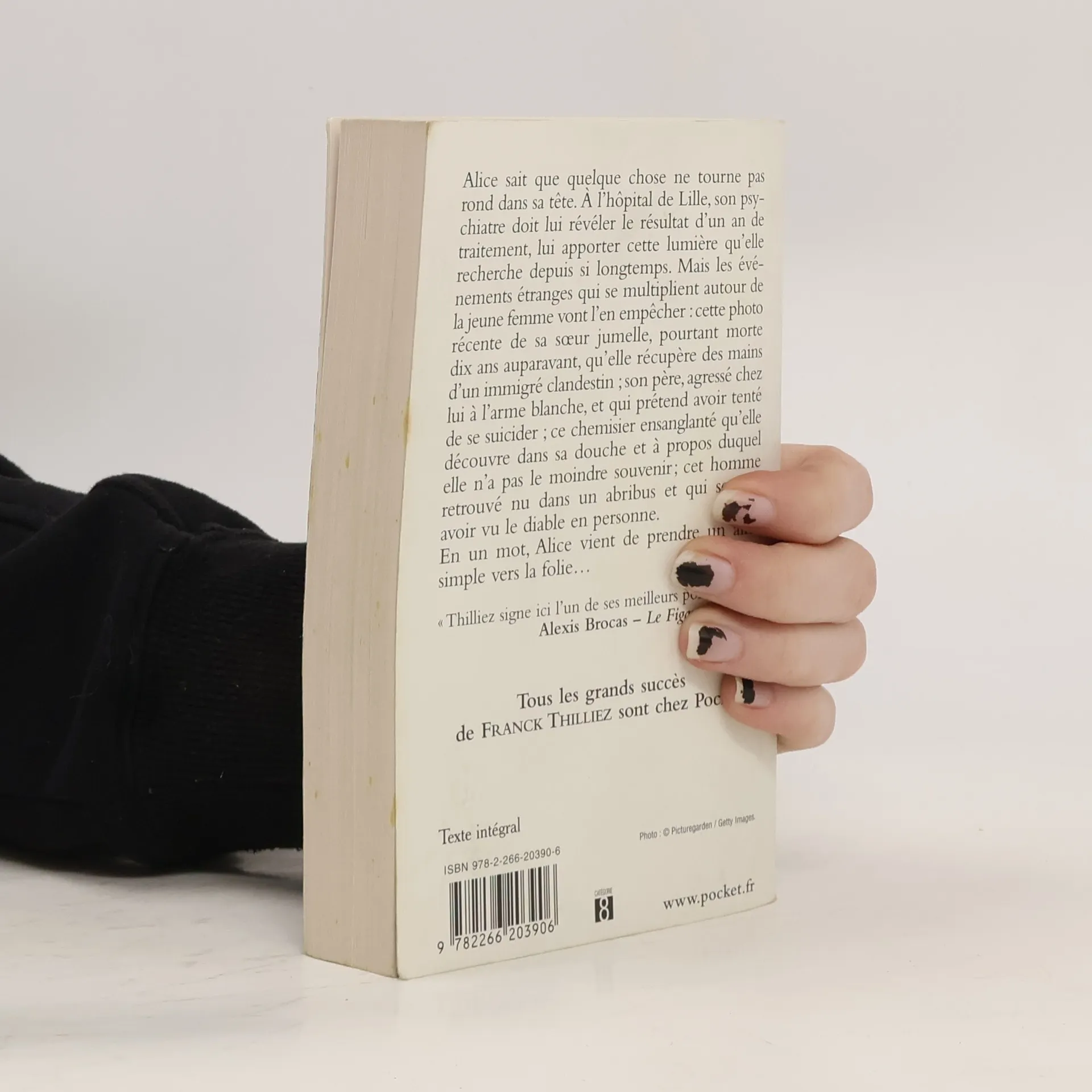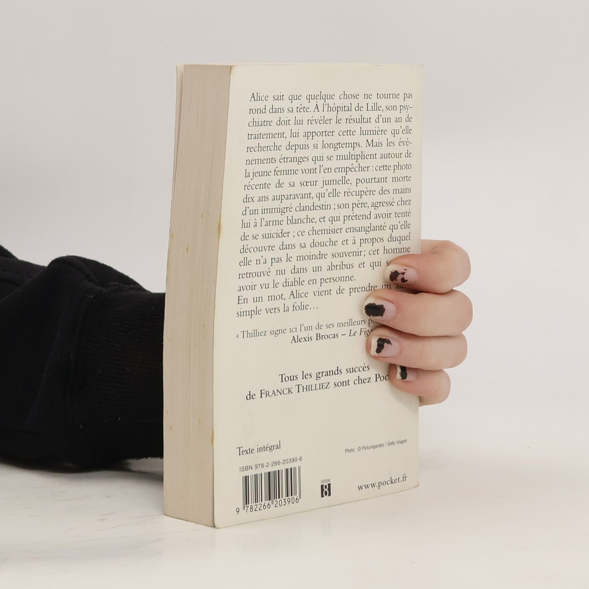 Alice sait que quelque chose ne tourne pas rond dans sa tête. A l'hôpital de Lille, son psychiatre doit lui révéler le résultat d'un an de traitement, lui apporter cette lumière qu'elle recherche depuis si longtemps. Mais les événements étranges qui se multiplient autour de la jeune femme vont l'en empêcher : cette photo récente de sa soeur jumelle, pourtant morte dix ans auparavant, qu'elle récupère des mains d'un immigré clandestin ; son père, agressé chez lui à l'arme blanche, et qui prétend avoir tenté de se suicider ; ce chemisier ensanglanté qu'elle découvre dans sa douche et à propos duquel elle n'a pas le moindre souvenir; cet homme retrouvé nu dans un abribus et qui semble avoir vu le diable en personne. En un mot, Alice vient de prendre un aller simple vers la folie...