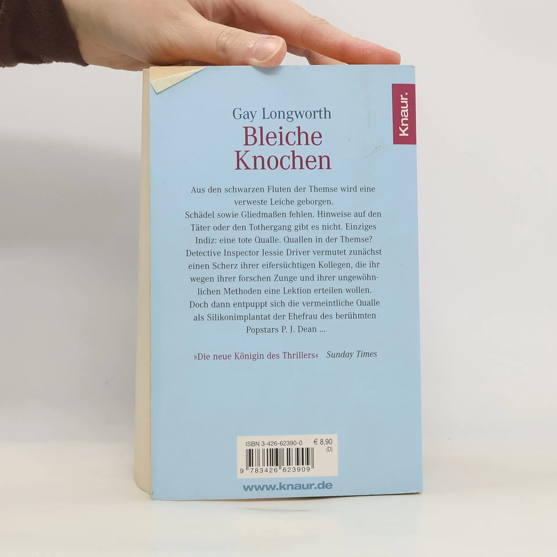 Aus den schwarzen Fluten der Themse wird das Skelett einer verwesten Leiche geborgen. Schädel sowie Gliedmaßen fehlen komplett. Am Tatort befindet sich nicht viel außer einer toten Qualle. Quallen in der Themse? Detective Inspector Jessie Driver vermutet zunächst einen Scherz ihrer eifersüchtigen Kollegen, die ihr wegen ihrer forschen Zunge und ihrer ungewöhnlichen Methoden eine Lektion erteilen wollen. Doch dann entpuppt sich die vermeintliche Qualle als Silikonimplantat der Ehefrau des berühmten Popstars P. J. Dean ...