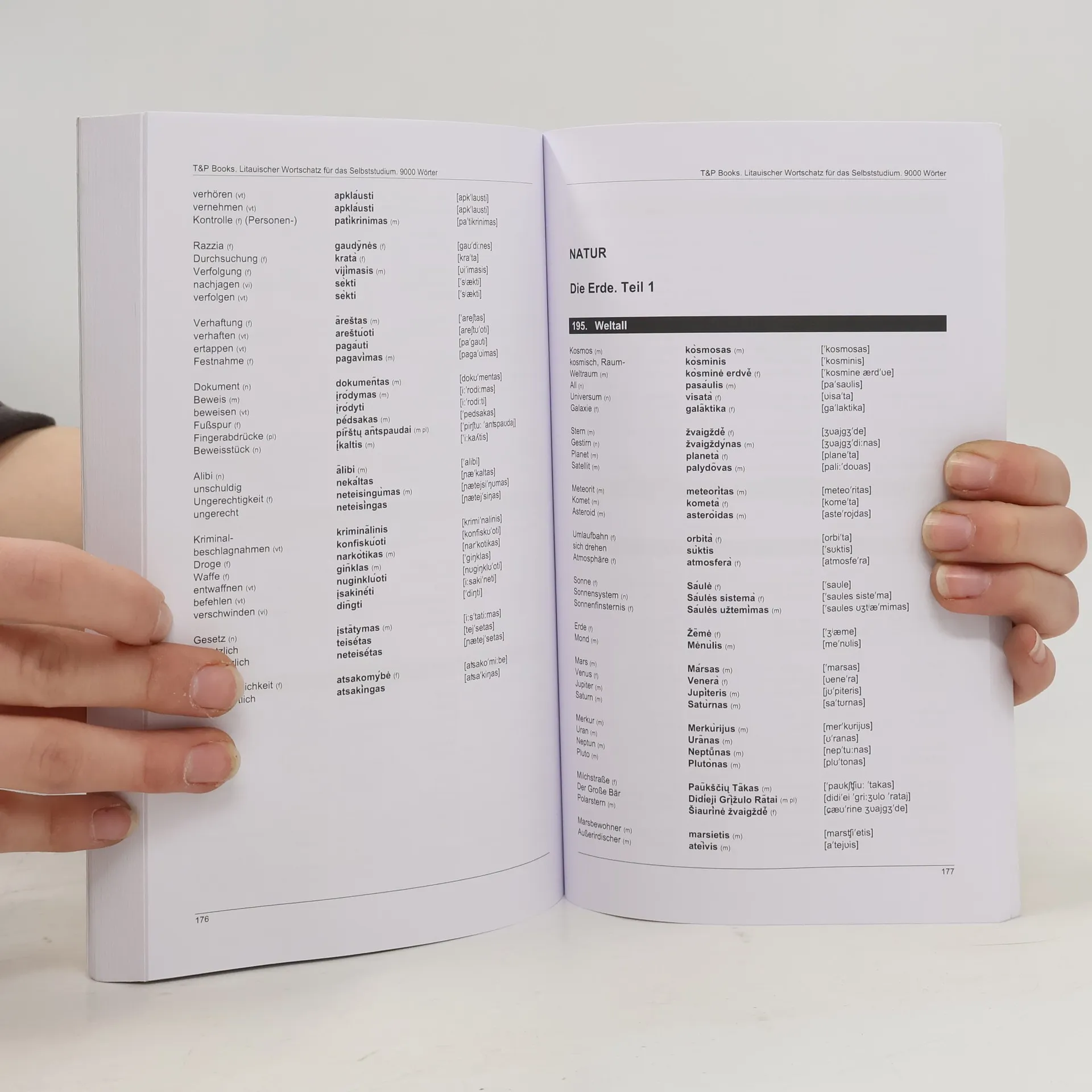 Die Vokabelbücher von T&P Books sind dafür vorgesehen, Ihnen beim Lernen einer Fremdsprache zu helfen, Wörter zu memorisieren und zu wiederholen. Der Wortschatz enthält über 9000 häufig gebrauchte, thematisch geordnete Wörter.Besondere Merkmale des Wörter sind entsprechend ihrer Bedeutung und nicht alphabetisch organisiert. Wörter werden in drei Spalten präsentiert, um das Wiederholen und den Selbstüberprüfungsprozess zu erleichtern. Wortgruppen werden in kleinere Einheiten aufgespalten, um den Lernprozess zu fördern. Der Wortschatz bietet eine praktische und einfache Transkription jedes Wortes der Fremdsprache.Der Wortschatz hat 256 Themen, einschließ Grundbegriffe, Zahlen, Farben, Monate, Jahreszeiten, Maßeinheiten, Kleidung und Accessoires, Essen und Ernährung, Restaurants, Familienangehörige, Verwandte, Charaktereigenschaften, Empfindungen, Gefühle, Krankheiten, Großstadt, Kleinstadt, Sehenswürdigkeiten, Einkaufen, Geld, Haus, Zuhause, Büro, Import & Export, Marketing, Arbeitssuche, Sport, Ausbildung, Computer, Internet, Werkzeug, Natur, Länder, Nationalitäten und vieles mehr ...Dieser T&P Books Empfohlen als Ergänzung für jeden Sprachkurs. Erfüllt die Bedürfnisse von Anfängern und fortgeschrittenen Lernenden von Fremdsprachen. Praktisch für den täglichen Gebrauch, mit Wiederholungen und Aktivitäten um sich selbst zu testen.