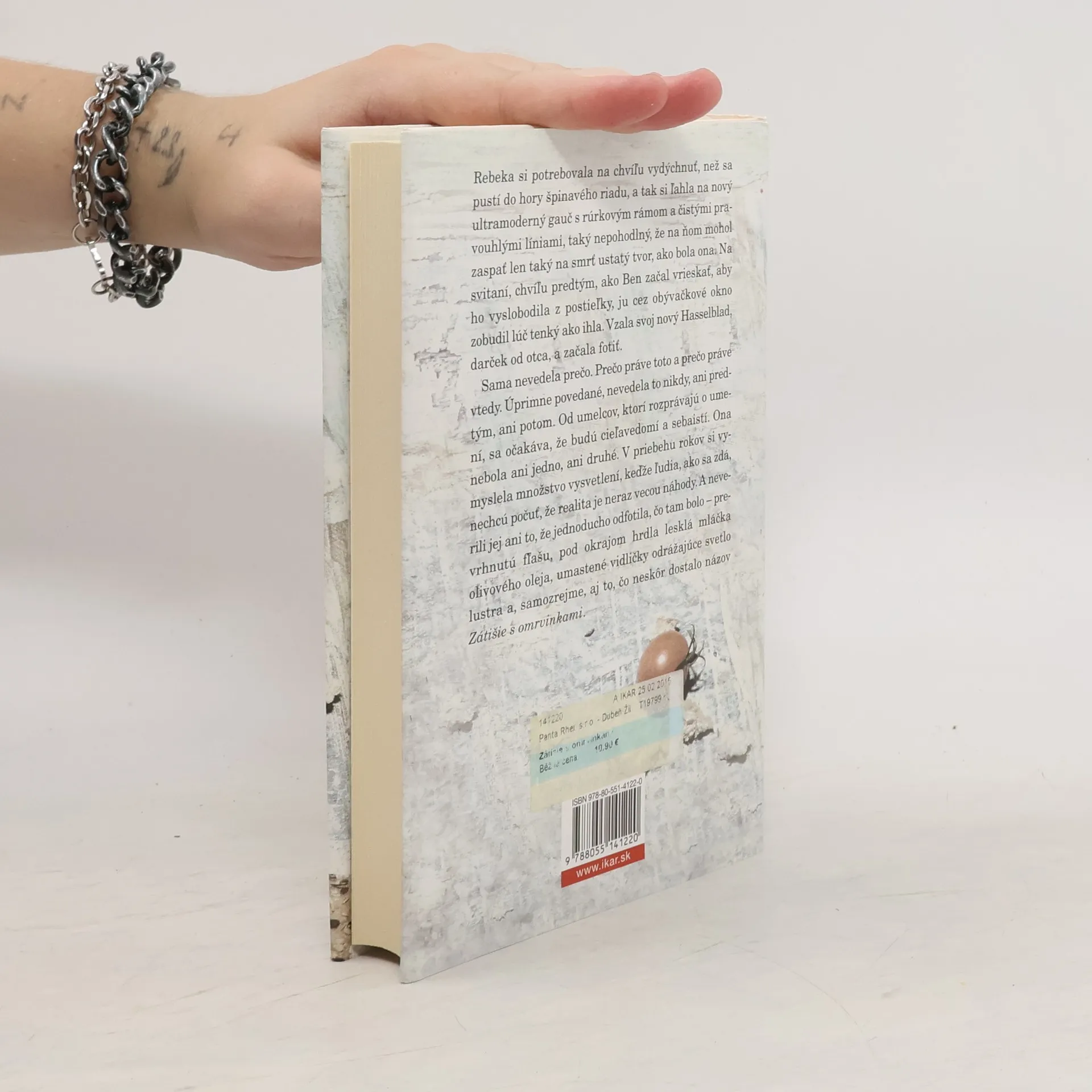 Umelkyňa Rebeka Winterová sa v mladosti preslávila sériou fotografií z domáceho prostredia. Priam žasla, ako ju kritici vynášali do nebies pre pár fotiek neporiadku na kuchynskej linke. Po rokoch úspechov sa jej kariéra ocitá na zostupe, účet v banke vysychá. Keď ste na vrchole, žnete pozornosť, v starobe ceny – povedal raz ktosi známy a Rebeka si uvedomí, že tento výrok sa začína vzťahovať aj na ňu. Šesťdesiatročná fotografka preto opúšťa New York a uchýli sa do zapadnutého mestečka, kde hľadá novú inšpiráciu. A tam, v posede na strome a v spoločnosti pokrývača Jima Batesa, zistí, že život je viac než to, čo vidí cez hľadáčik fotoaparátu. Zátišie s omrvinkami, pútavý príbeh o nečakanej láske, ponúka pohľad do života, srdca a mysle ženy. Ženy, ktorá dospeje k zisteniu, že život je oveľa mnohotvárnejší a vzrušujúcejší, než predpokladala. Z anglického originálu Still Life with Bread Crumbs (Hutchinson, London 2014) preložila Zdenka Buntová.