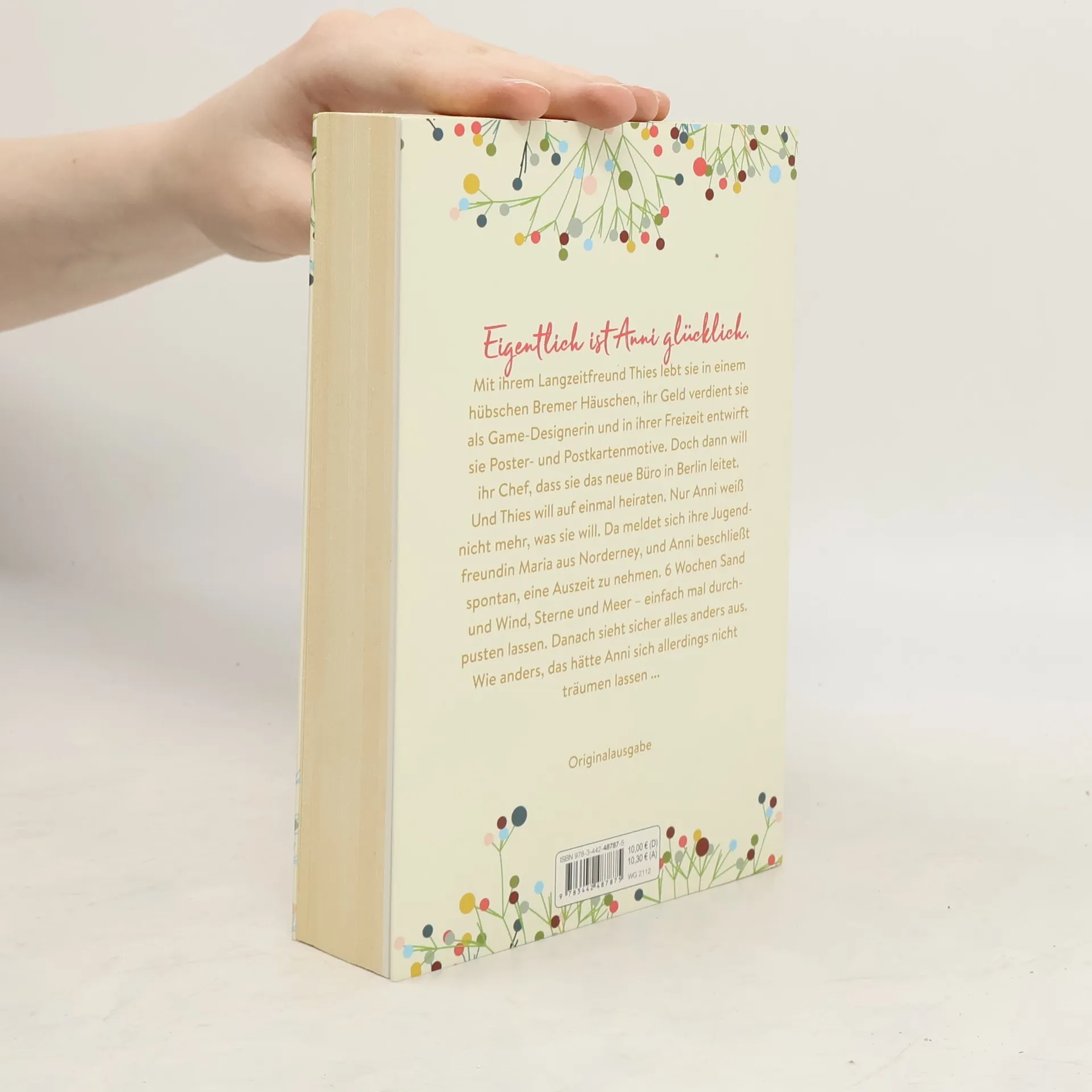Eigentlich ist Anni glücklich. Mit ihrem Langzeitfreund Thies lebt sie in einem hübschen Bremer Häuschen, ihr Geld verdient sie als Game-Designerin und in ihrer Freizeit entwirft sie Poster- und Postkartenmotive. Doch dann will ihr Chef, dass sie das neue Büro in Berlin leitet. Und Thies will auf einmal heiraten. Nur Anni weiß nicht mehr, was sie will. Da meldet sich ihre Jugendfreundin Maria aus Norderney, und Anni beschließt spontan, eine Auszeit zu nehmen. 6 Wochen Sand und Wind, Sterne und Meer – einfach mal durchpusten lassen. Danach sieht sicher alles anders aus. Wie anders, das hätte Anni sich allerdings nicht träumen lassen ...