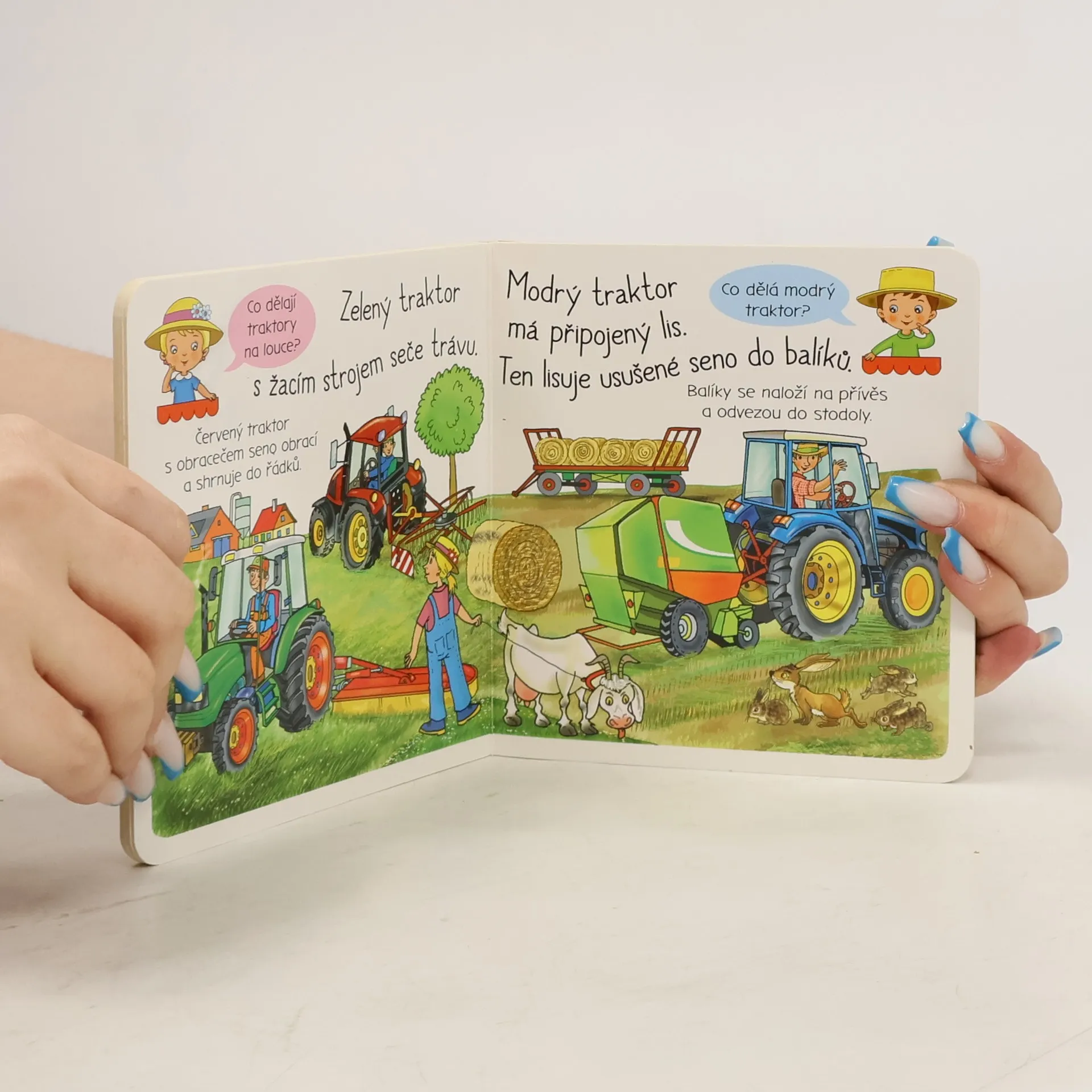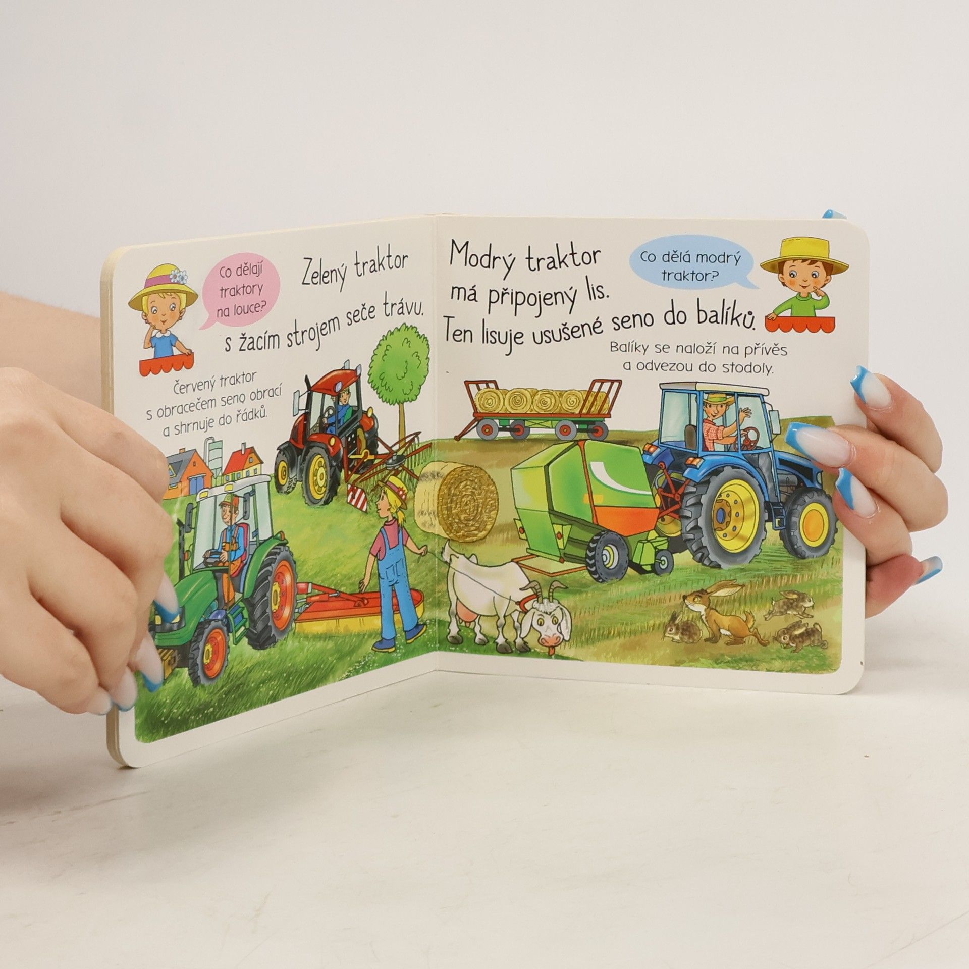 Bohatě ilustrovaná knížka s krátkými texty dětem ukazuje, k čemu se na statku používá traktor i jaké další stroje usnadňují farmářům práci.