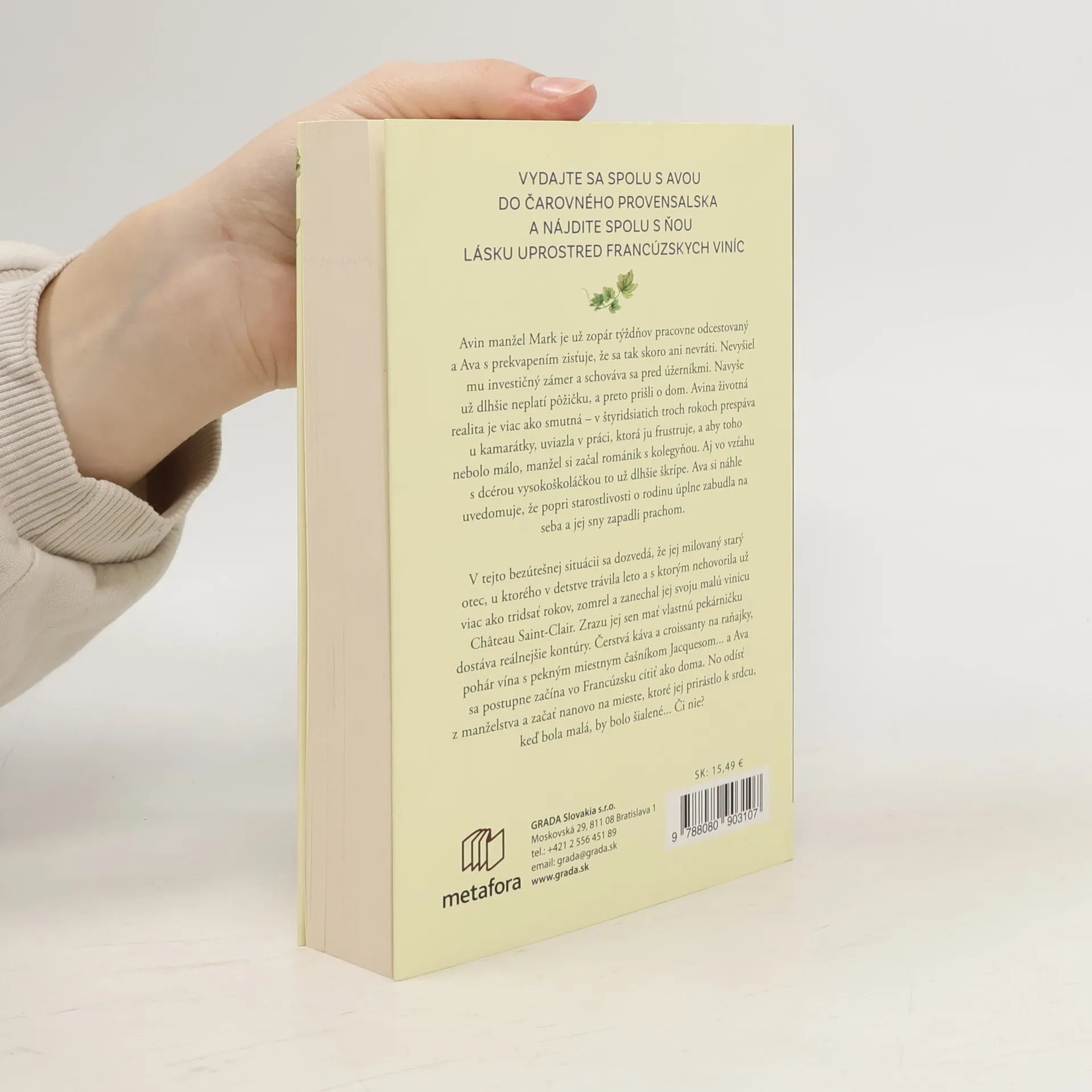Avin manžel Mark je už zopár týždňov pracovne odcestovaný a Ava s prekvapením zisťuje, že sa tak skoro ani nevráti. Nevyšiel mu investičný zámer a schováva sa pred úžerníkmi. Navyše už dlhšie neplatí pôžičku, a preto prišli o dom. Avina životná realita je viac ako smutná – v štyridsiatich troch rokoch prespáva u kamarátky, uviazla v práci, ktorá ju frustruje, a aby toho nebolo málo, manžel si začal románik s kolegyňou. Aj vo vzťahu s dcérou vysokoškoláčkou to už dlhšie škrípe. Ava si náhle uvedomuje, že popri starostlivosti o rodinu úplne zabudla na seba a jej sny zapadli prachom. V tejto bezútešnej situácii sa dozvedá, že jej milovaný starý otec, u ktorého v detstve trávila leto a s ktorým nehovorila už viac ako tridsať rokov, zomrel a zanechal jej svoju malú vinicu Château Saint-Clair. Zrazu jej sen mať vlastnú pekárničku dostáva reálnejšie kontúry. Čerstvá káva a croissanty na raňajky, pohár vína s pekným miestnym čašníkom Jacquesom... a Ava sa postupne začína vo Francúzsku cítiť ako doma. No odísť z manželstva a začať nanovo na mieste, ktoré jej prirástlo k srdcu, keď bola malá, by bolo šialené... Či nie?