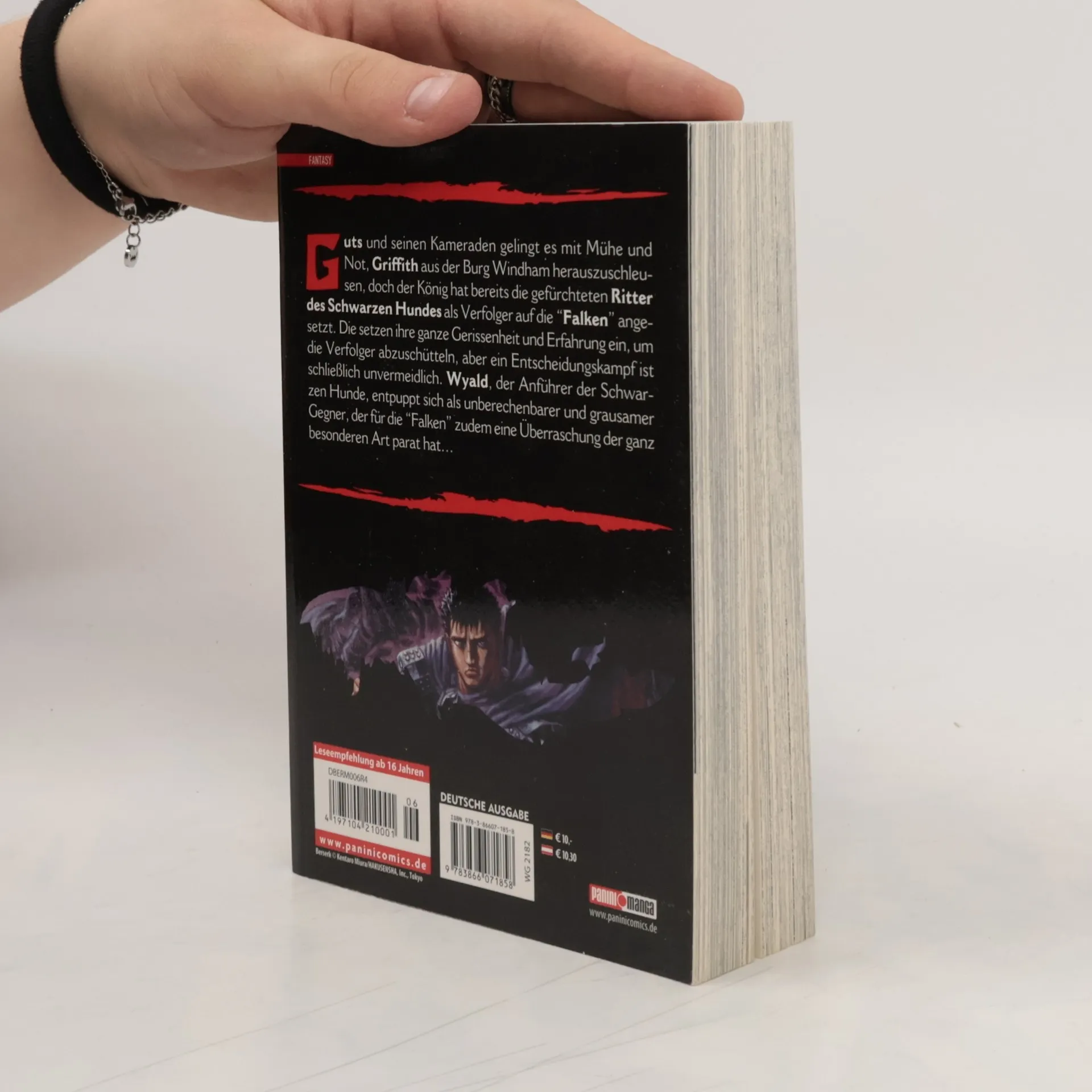 Erlebe den erbarmungslosen Rachefeldzug von Guts, dem "Schwarzen Ritter", in einer düsteren Welt voller Monster. In Band 6 gelingt es Guts und seinen Gefährten, Griffith zu befreien, doch die gefürchteten Ritter des Schwarzen Hundes setzen alles daran, sie zu verfolgen. Ein unvermeidlicher Entscheidungskampf steht bevor!