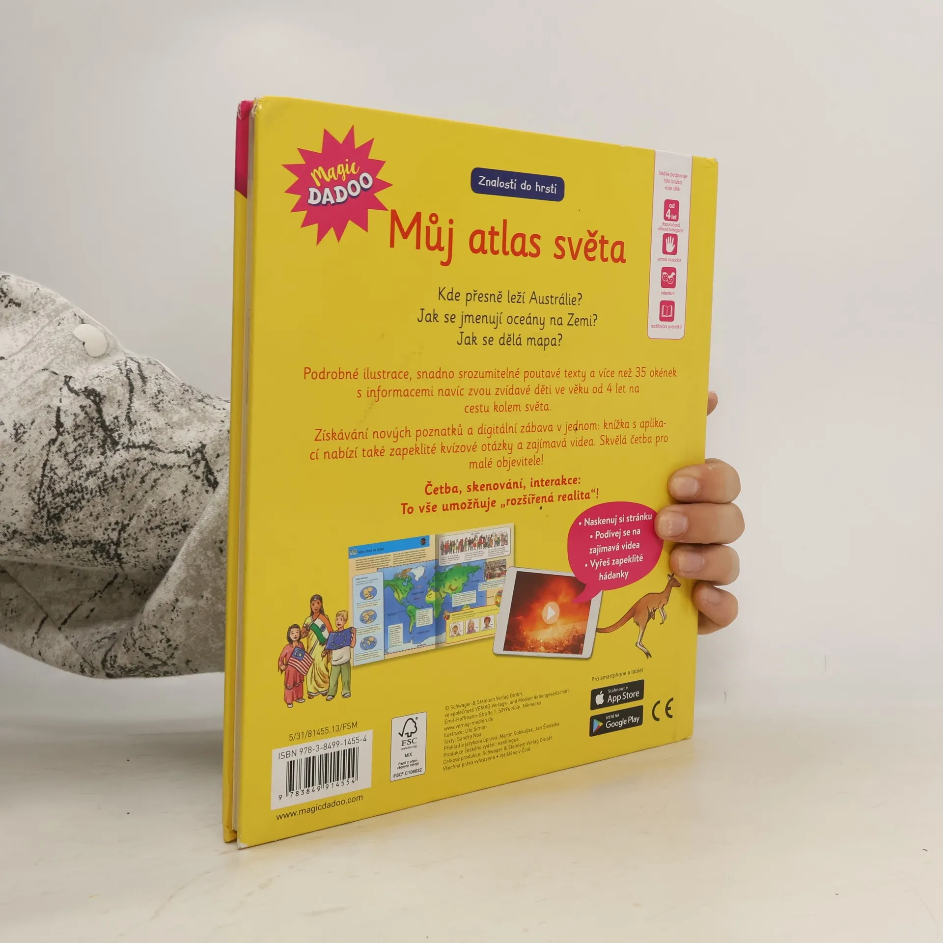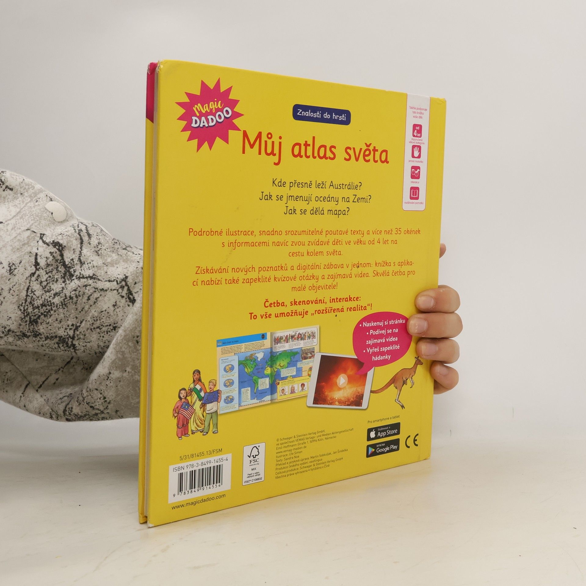 Kde přesně leží Austrálie? Jak se jmenují oceány na Zemi? Jak se dělá mapa? Podrobné ilustrace, snadno srozumitelné poutavé texty a více než 35 okének s informacemi navíc zvou zvídavé děti ve věku od 4 let na cestu kolem světa. Získávání nových poznatků a digitální zábava v jednom: knížka s aplikací nabízí také zapeklité kvízové otázky a zajímavá videa. Skvělá četba pro malé objevitele! Četba, skenování, interakce: To vše umožňuje "rozšířená realita"!