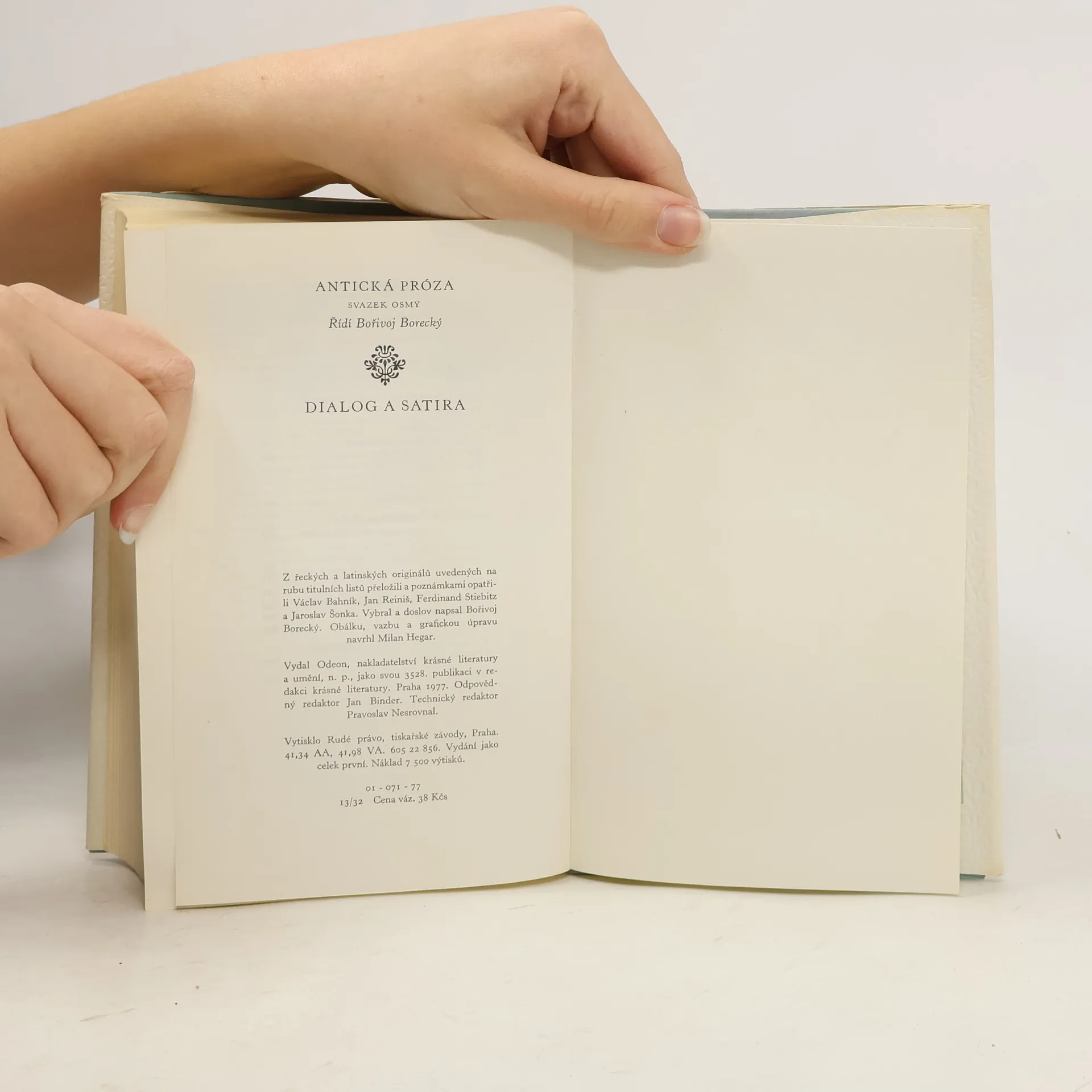 Antická próza 8. Dialog a satira, Václav Bahník, Marcus Tullius Cicero, Petronius, Bořivoj Borecký, Xenofón, Lucius Annaeus Seneca, Platon, Lucian of Samosata