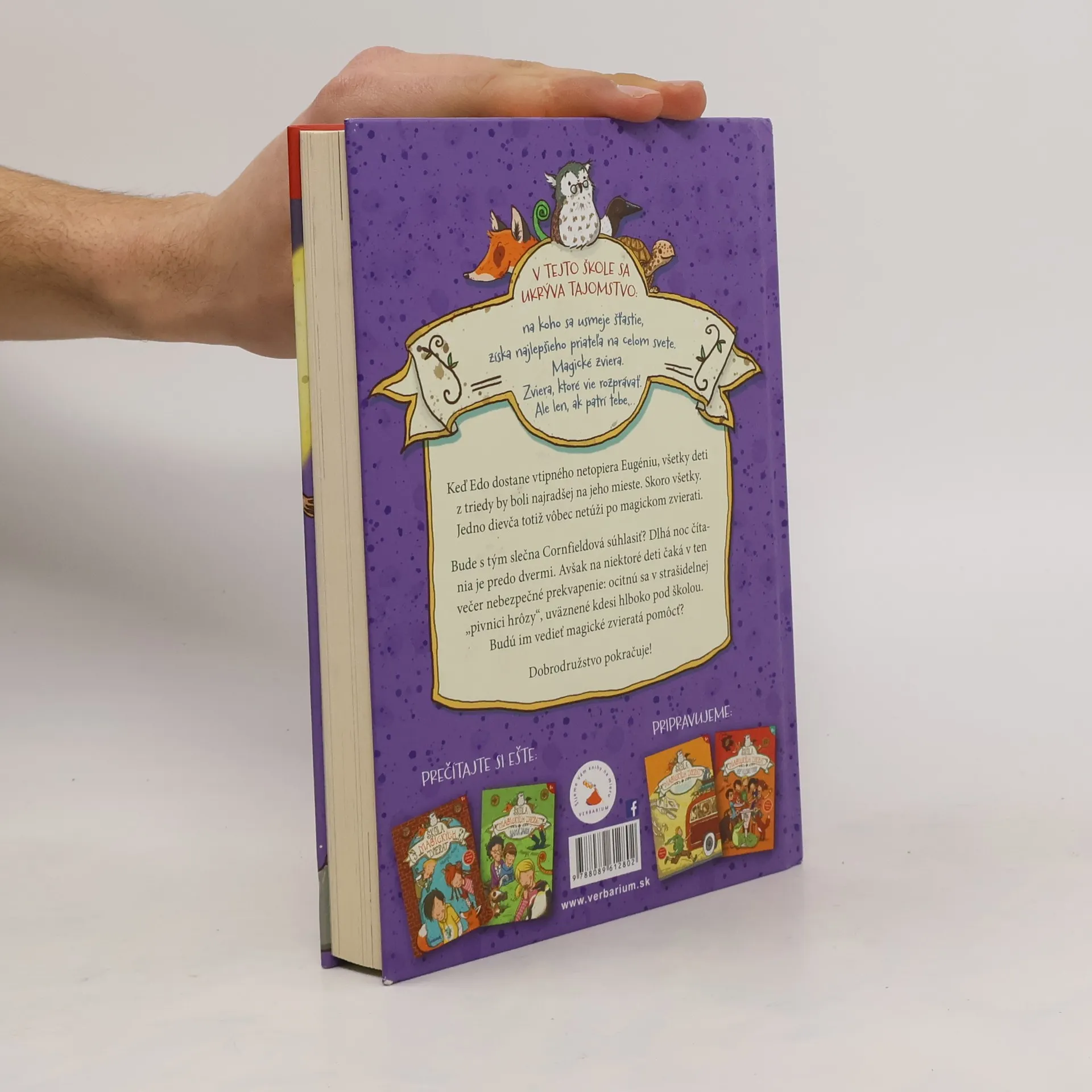 V tejto škole sa ukrýva tajomstvo. Na koho sa usmeje šťastie, nájde najlepšieho priateľa na celom svete. Magické zviera. Zviera, ktoré vie rozprávať. Ale len ak patrí tebe... Keď dostane Edo vtipného netopiera Eugéniu, všetky deti z triedy by boli najradšej na jeho mieste. Skoro všetky. Jedno dievča totiž vôbec netúži po magickom zvierati. Bude s tým slečna Cornfieldová súhlasiť? Dlhá Noc čítania je predo dvermi. Avšak na niektoré deti čaká v ten večer nebezpečné prekvapenie: ocitnú sa v strašidelnej „Pivnici hrôzy“, uväznené kdesi hlboko pod školou. Budú im vedieť magické zvieratá pomôcť?