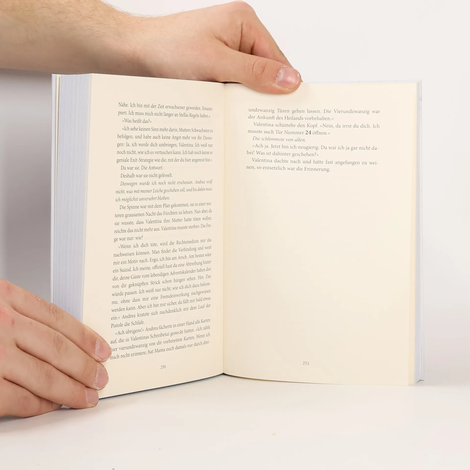 Vor elf Jahren wurde Alma als Baby unter mysteriösen Umständen zur Adoption freigegeben. In ihrer streng unter Verschluss gehaltenen Adoptionsakte steht der Vermerk: »Identität der Eltern darf unter keinen Umständen ans Licht kommen! Mutter droht Todesgefahr!!!« Doch nun ist Alma lebensgefährlich erkrankt und braucht dringend einen Knochenmarkspender. Um das Leben ihrer Adoptivtochter zu retten, startet Olivia Rauch eine verzweifelte Suche nach den biologischen Eltern. Dabei stößt die auf Gewaltverbrechen spezialisierte Psychologin auf die Legende vom »Kalendermädchen«: einer jungen Frau, die sich einst zur Weihnachtszeit in ein abgeschiedenes Häuschen im Frankenwald zurückgezogen hatte. Und die dort von einem Psychopathen heimgesucht wurde, der sie zwang, einen Adventskalender des Grauens zu öffnen … . Mit den verschiedenen Zeitebenen, hatte ich keine Probleme. Die Twists habe ich meistens absolut nicht kommen sehen. So saß ich oft sehr überrascht im Sessel und war noch mehr gefesselt.