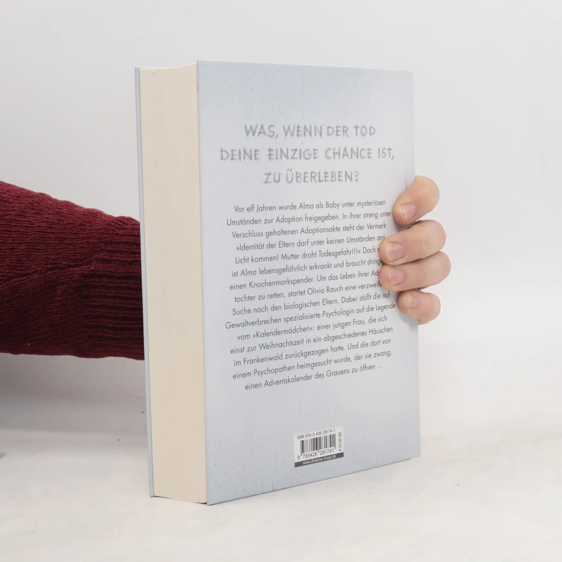 Vor elf Jahren wurde Alma als Baby unter mysteriösen Umständen zur Adoption freigegeben. In ihrer streng unter Verschluss gehaltenen Adoptionsakte steht der Vermerk: »Identität der Eltern darf unter keinen Umständen ans Licht kommen! Mutter droht Todesgefahr!!!« Doch nun ist Alma lebensgefährlich erkrankt und braucht dringend einen Knochenmarkspender. Um das Leben ihrer Adoptivtochter zu retten, startet Olivia Rauch eine verzweifelte Suche nach den biologischen Eltern. Dabei stößt die auf Gewaltverbrechen spezialisierte Psychologin auf die Legende vom »Kalendermädchen«: einer jungen Frau, die sich einst zur Weihnachtszeit in ein abgeschiedenes Häuschen im Frankenwald zurückgezogen hatte. Und die dort von einem Psychopathen heimgesucht wurde, der sie zwang, einen Adventskalender des Grauens zu öffnen … . Mit den verschiedenen Zeitebenen, hatte ich keine Probleme. Die Twists habe ich meistens absolut nicht kommen sehen. So saß ich oft sehr überrascht im Sessel und war noch mehr gefesselt.
