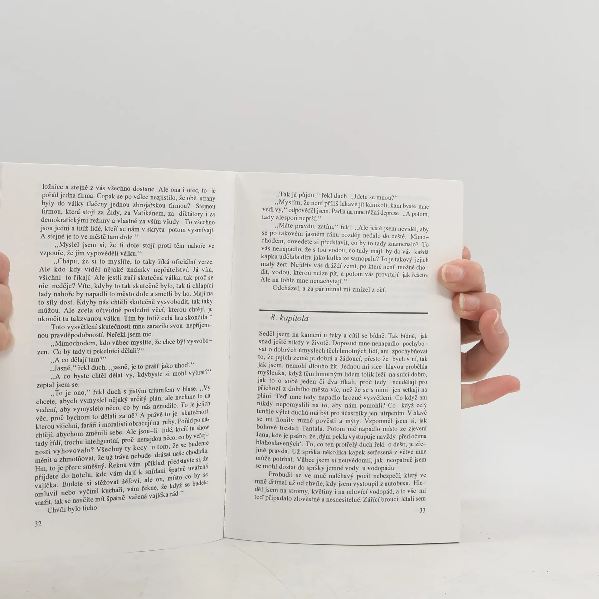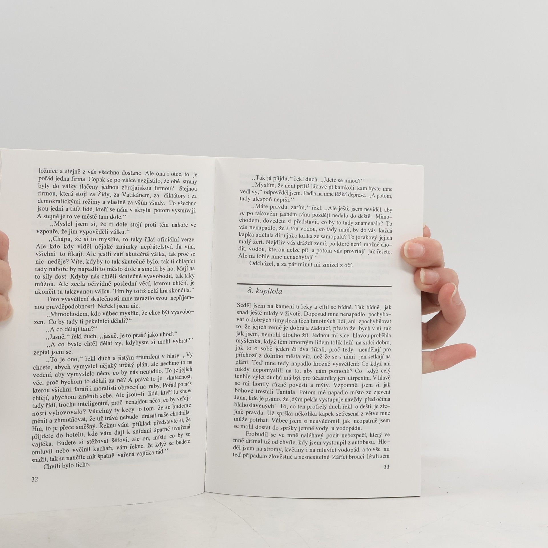 Myšlenka spojit nebe a peklo dohromady je asi věčně v nás, založená na víře, že skutečnost nás nikdy nestaví před nevyhnutelné buď-anebo. Na víře, že máme-li schopnosti, klid a navíc dostatek času, najdeme vždycky určitý způsob přijetí obou alternativ. Tuto víru považuji za katastrofální omyl. Nemůžete si vzít všechna svá zavazadla na všechny cesty, které máte před sebou. Nežijeme ve světě, kde všechny cesty jsou spirály, a jestliže po nich jdeme dostatečně dlouho, přibližujeme se ke středu, který nakonec jistě nalezneme. Žijeme spíše ve světě, kde se každá cesta po několika kilometrech dělí na dvě, každá z nich po chvíli opět na dvě další a na každém z těch rozcestí stojíme před rozhodnutím…
