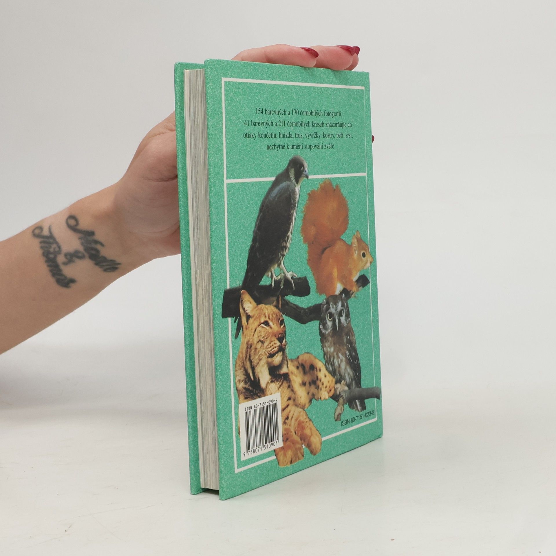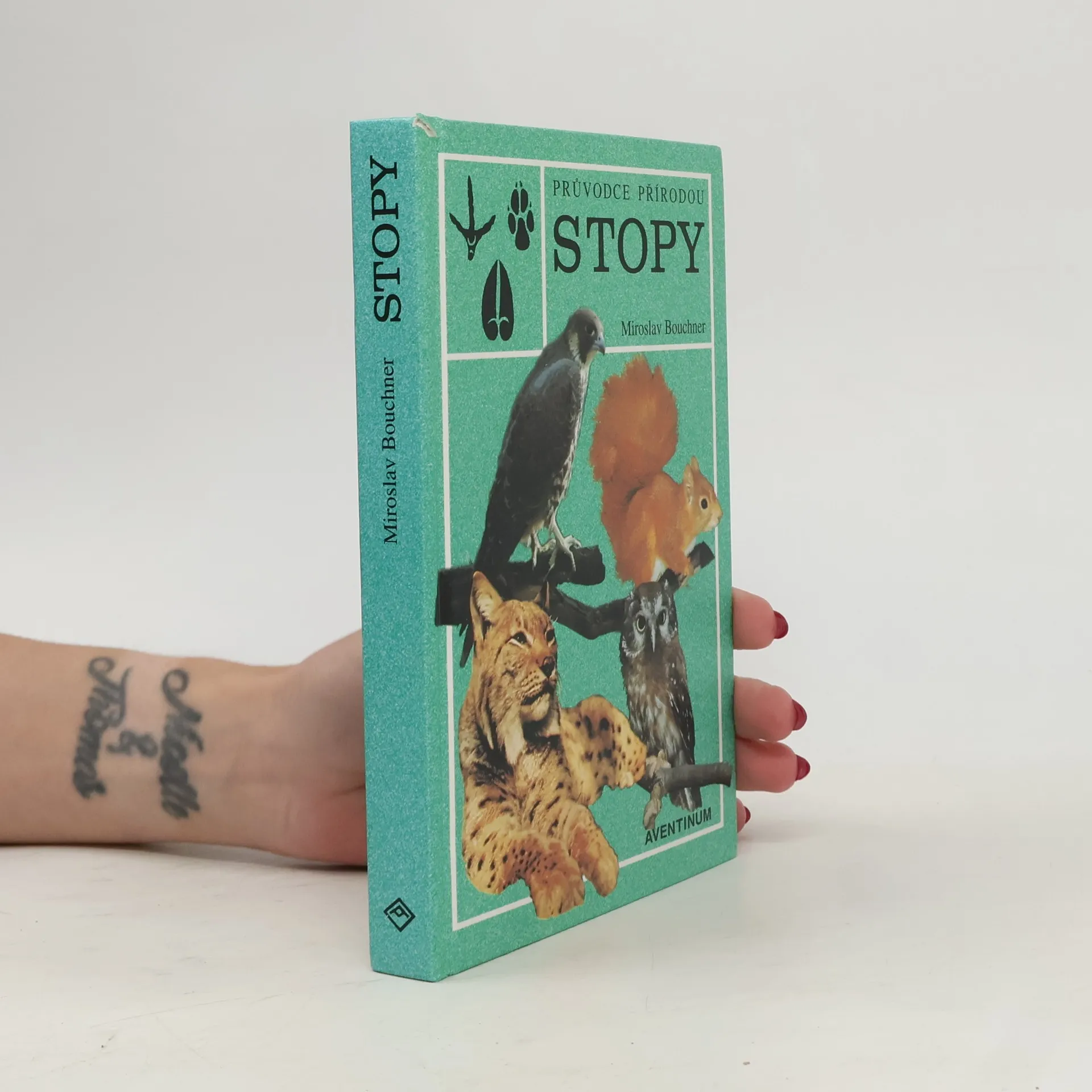 Fotografie a kresby znázorňující otisky končetin, hnízda, trus, vývržky, kostry, peří, srst nezbytné k umění stopování zvěře.