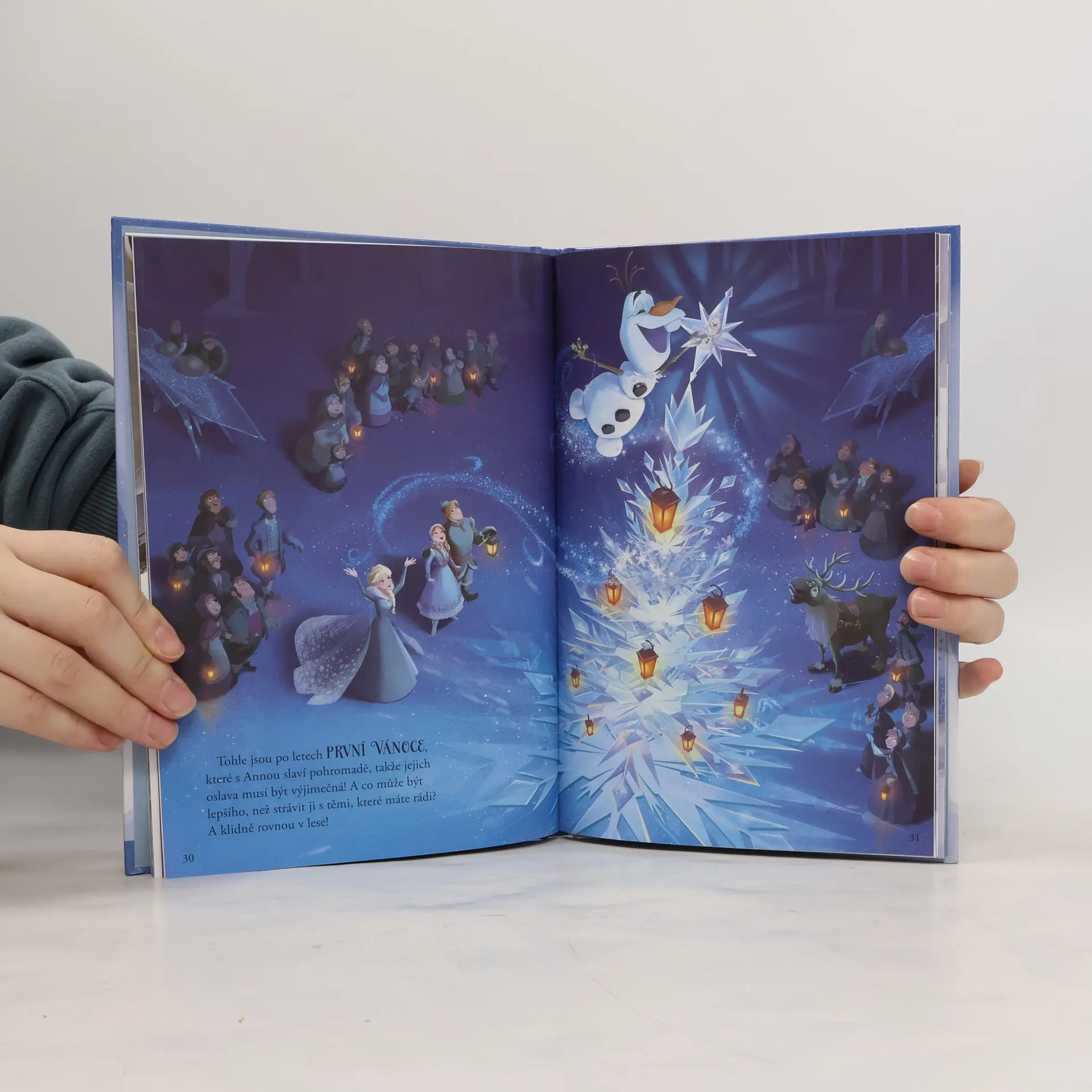 Oblíbení hrdinové z filmu ve dvou příbězích s celostránkovými ilustracemi. Dva příběhy s Annou, Elsou a jejich kamarádem Olafem. V prvním se blíží Vánoce, první, které po dlouhé době stráví Anna s Elsou konečně zase spolu. Olaf se pro ně pokusí sehnat nějaké pěkné rodinné tradice. Ve druhém příběhu se malý sněhulák, který tak moc miluje léto, dozví, proč je i jaro úžasné. Nakladatelská anotace.
