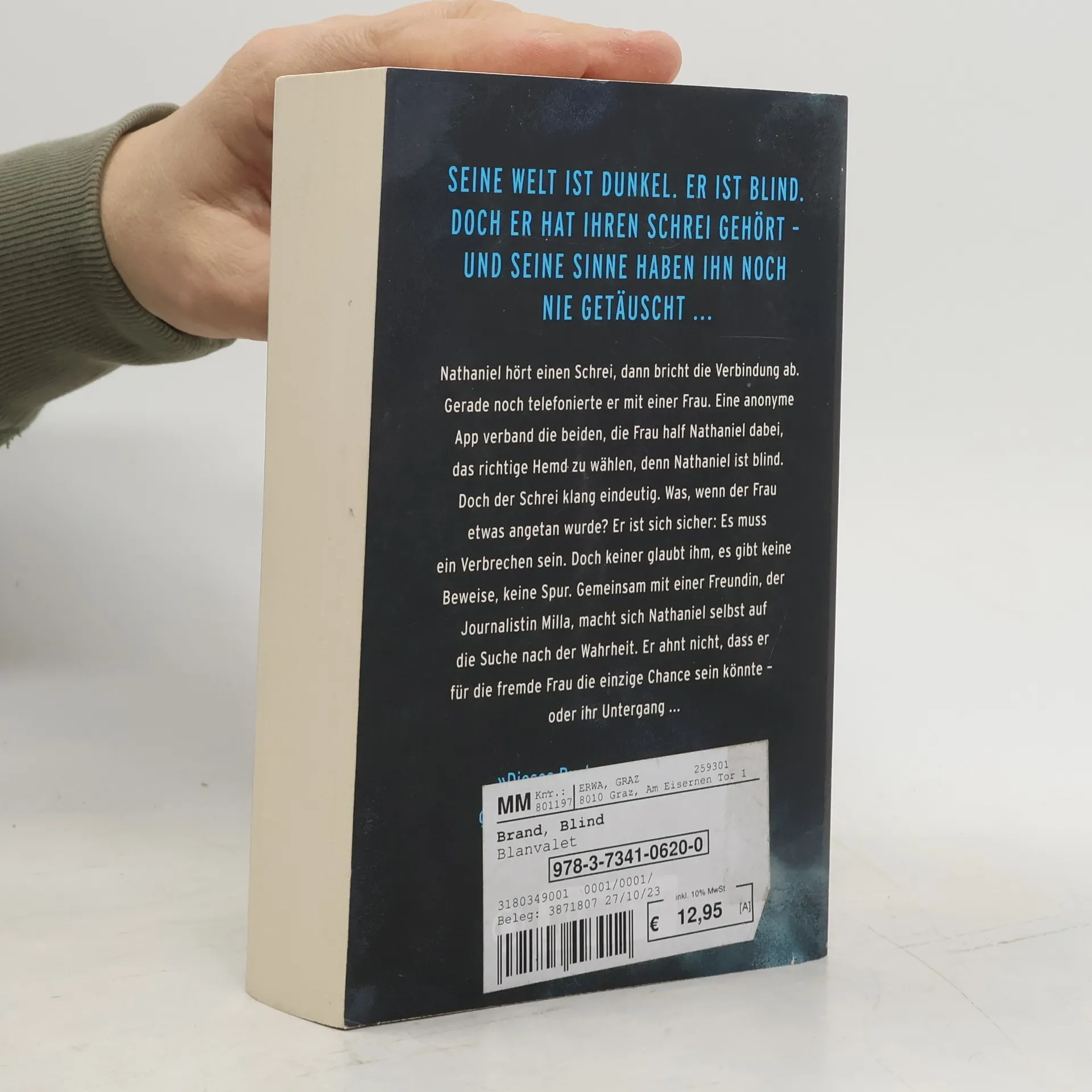 Nathaniel, blind, erhält einen anonymen Anruf von einer Frau, die plötzlich schreit und die Verbindung abbricht. Überzeugt von einem Verbrechen, beginnt er mit seiner Freundin Milla, einer Journalistin, nach der Wahrheit zu suchen. Doch er ahnt nicht, dass er ihr Schicksal entscheidend beeinflussen könnte.