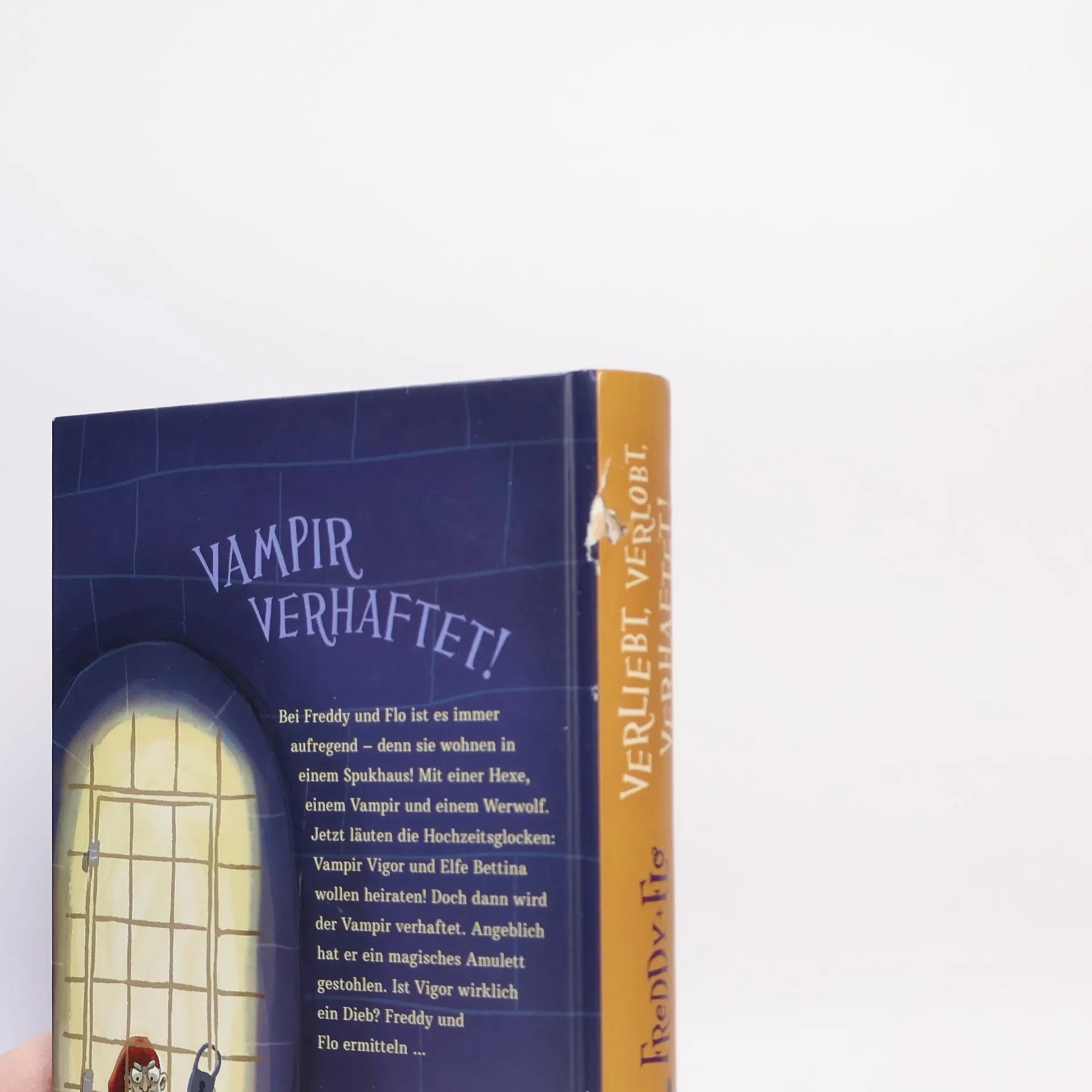 Freddy und Flo leben in einem Spukhaus mit einer Hexe, einem Vampir und einem Werwolf. Als Vampir Vigor und Elfe Bettina heiraten wollen, wird Vigor wegen Diebstahls eines magischen Amuletts verhaftet. Freddy und Flo glauben nicht an seine Schuld und ermitteln. Eine unterhaltsame Grusel-Detektivgeschichte für Kinder ab 8 Jahren.