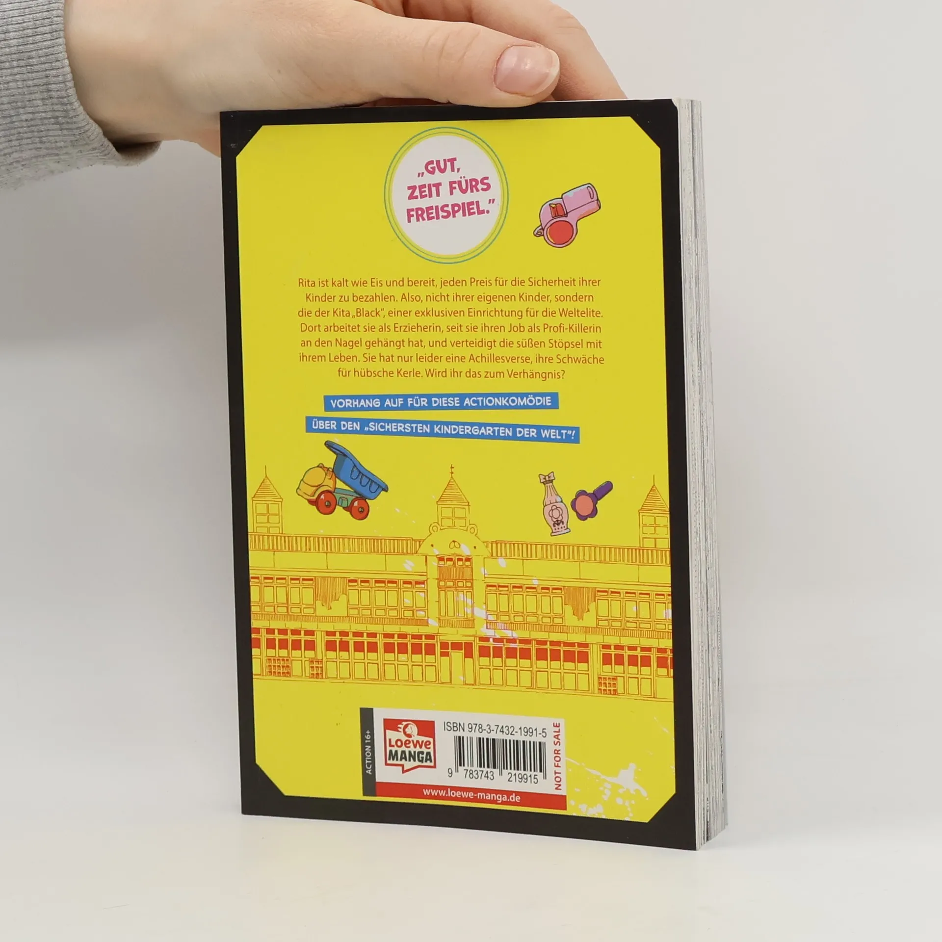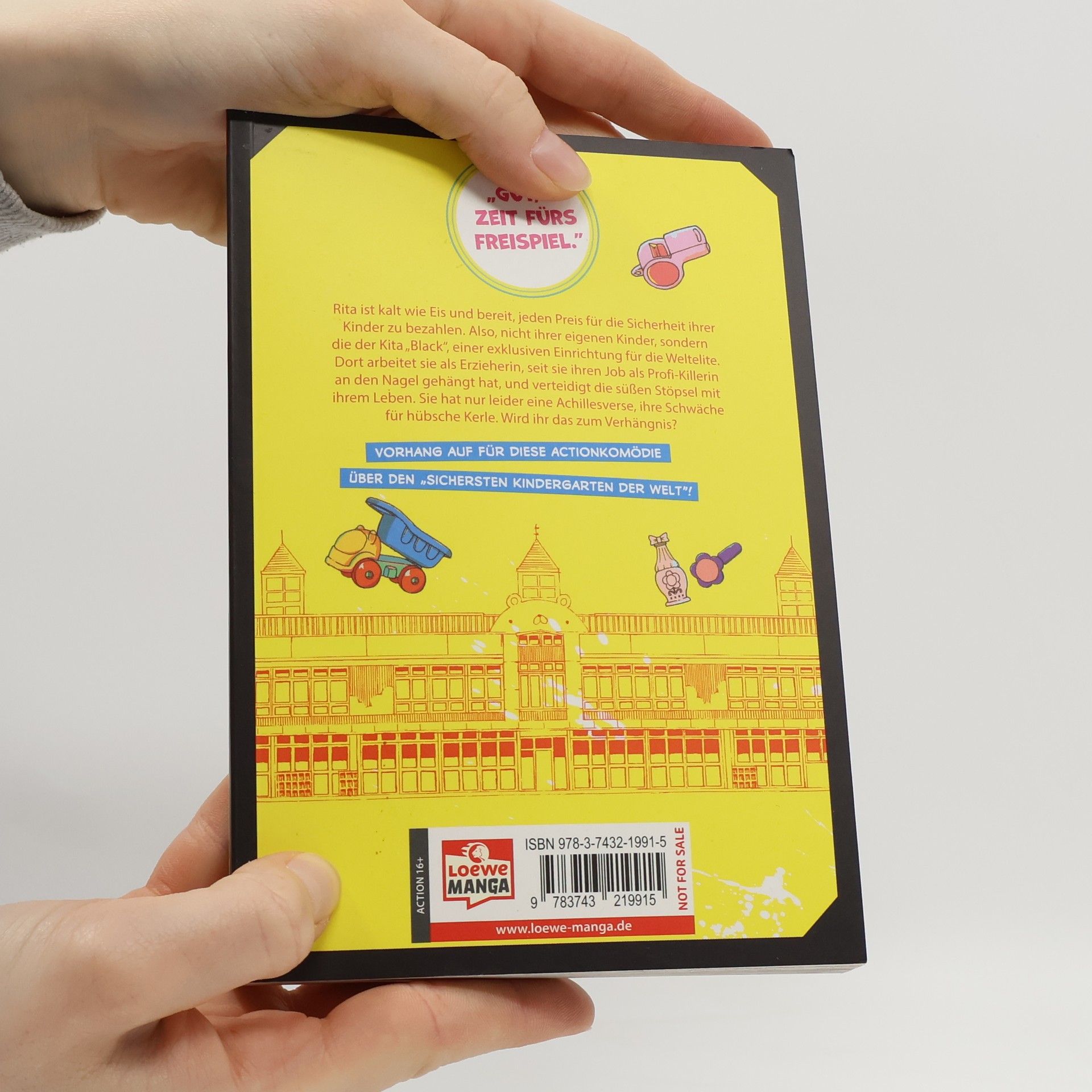 Ex-Profikillerin Rita arbeitet in der exklusiven KiTa Black und setzt alles für die Sicherheit der Kinder ein. Trotz ihrer eisernen Entschlossenheit hat sie eine Schwäche für hübsche Männer. Dieser humorvolle Manga vereint Action und Spaß und richtet sich an Fans ab 16, die Spannung und Comedy schätzen.