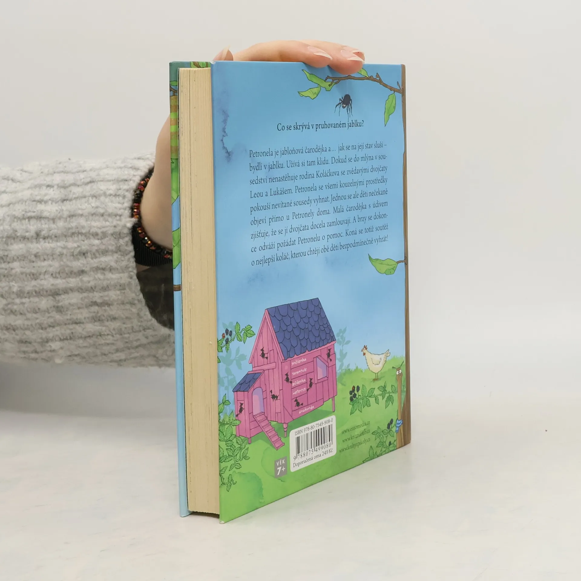 Petronela je čarodějka – ale žádná obyčejná čarodějka! Petronela je jabloňová čarodějka a… jak se na její stav sluší – bydlí v jablku. Užívá si tam klidu. Dokud se do mlýna v sousedství jednoho dne nenastěhuje rodina Koláčkova se zvědavými dvojčaty Leou a Lukášem. Petronela se všemi kouzelnými prostředky pokouší nevítané sousedy vyhnat. Jednou se ale děti nečekaně objeví přímo u Petronely doma. Malá čarodějka s údivem zjišťuje, že se jí dvojčata docela zamlouvají. A brzy se dokonce odváží požádat Petronelu o pomoc. Koná se totiž soutěž o nejlepší koláč, kterou chtějí obě děti bezpodmínečně vyhrát. A kdo by jim mohl pomoct lépe než všestranně nadaná jabloňová čarodějka…