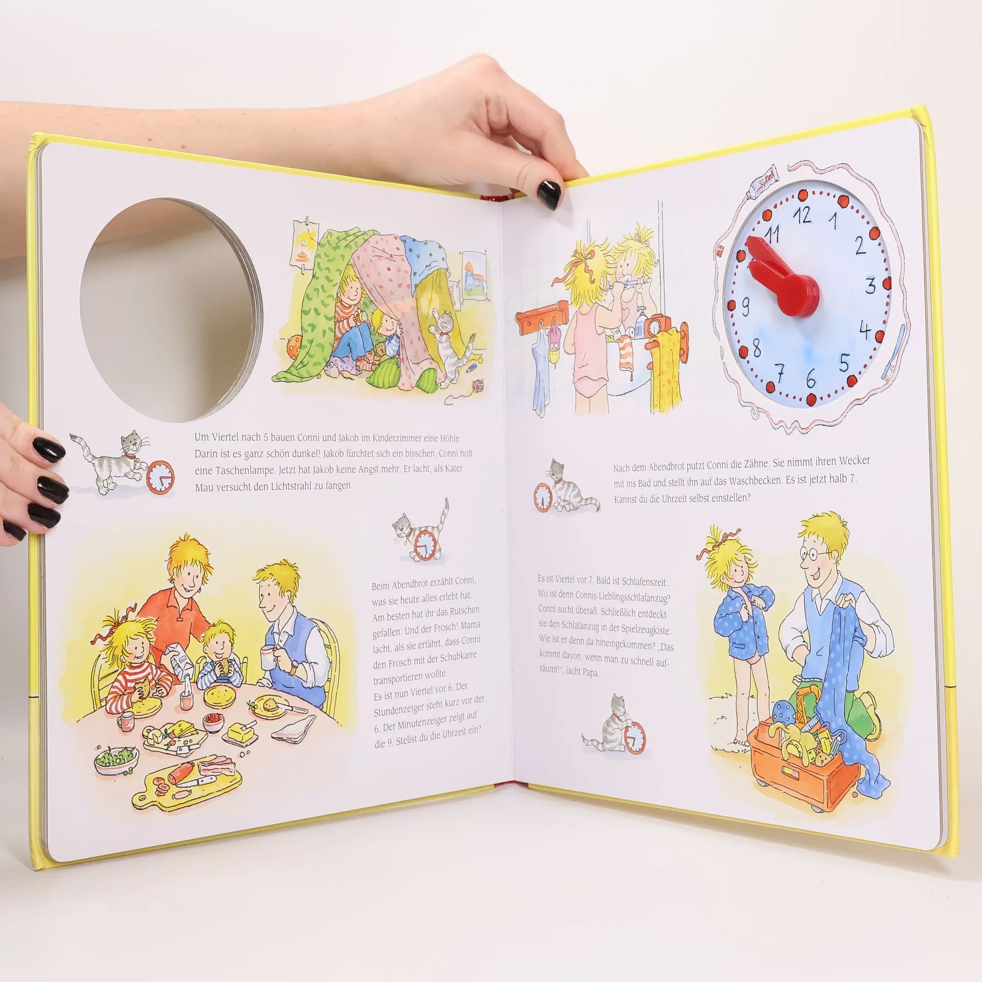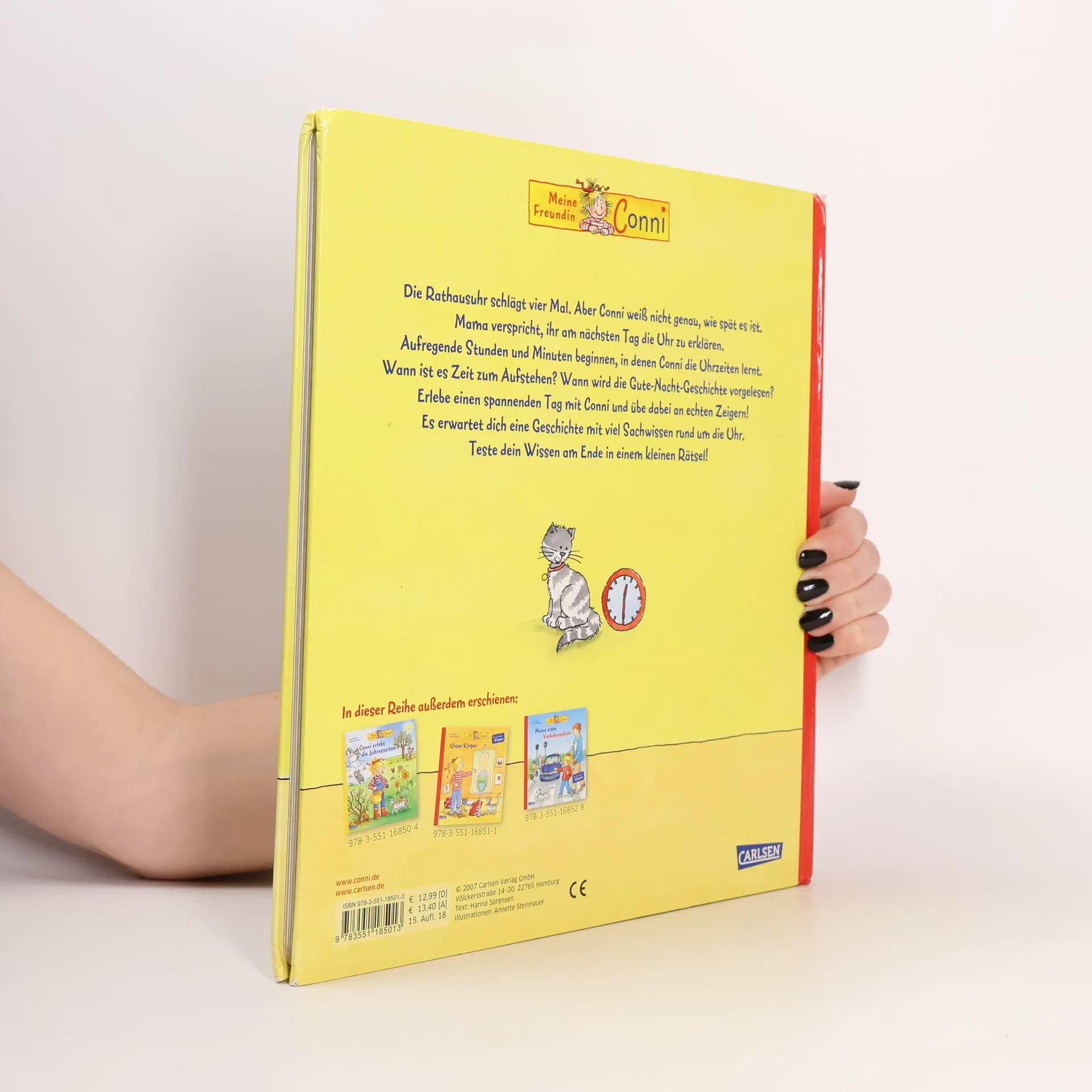 Die Rathausuhr schlägt vier Mal. Aber Conni weiß nicht genau, wie spät es ist. Doch Mama verspricht, ihr am nächsten Tag die Uhr zu erklären. Aufregende Stunden und Minuten beginnen, in denen Conni die Uhrzeiten lernt. Wann ist es Zeit zum Aufstehen? Wann wird die Gute-Nacht-Geschichte vorgelesen? Die Geschichte erzählt einen Tag in Connis Leben und liefert viele Informationen rund um die Uhr und ein kleines Rätsel! CE Warnung! Nicht geeignet für Kinder unter 3 Jahren; Verschluckbare Kleinteile, Erstickungsgefahr
