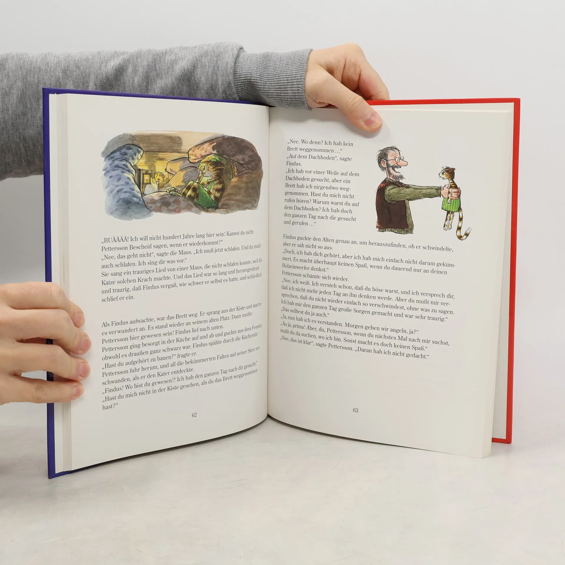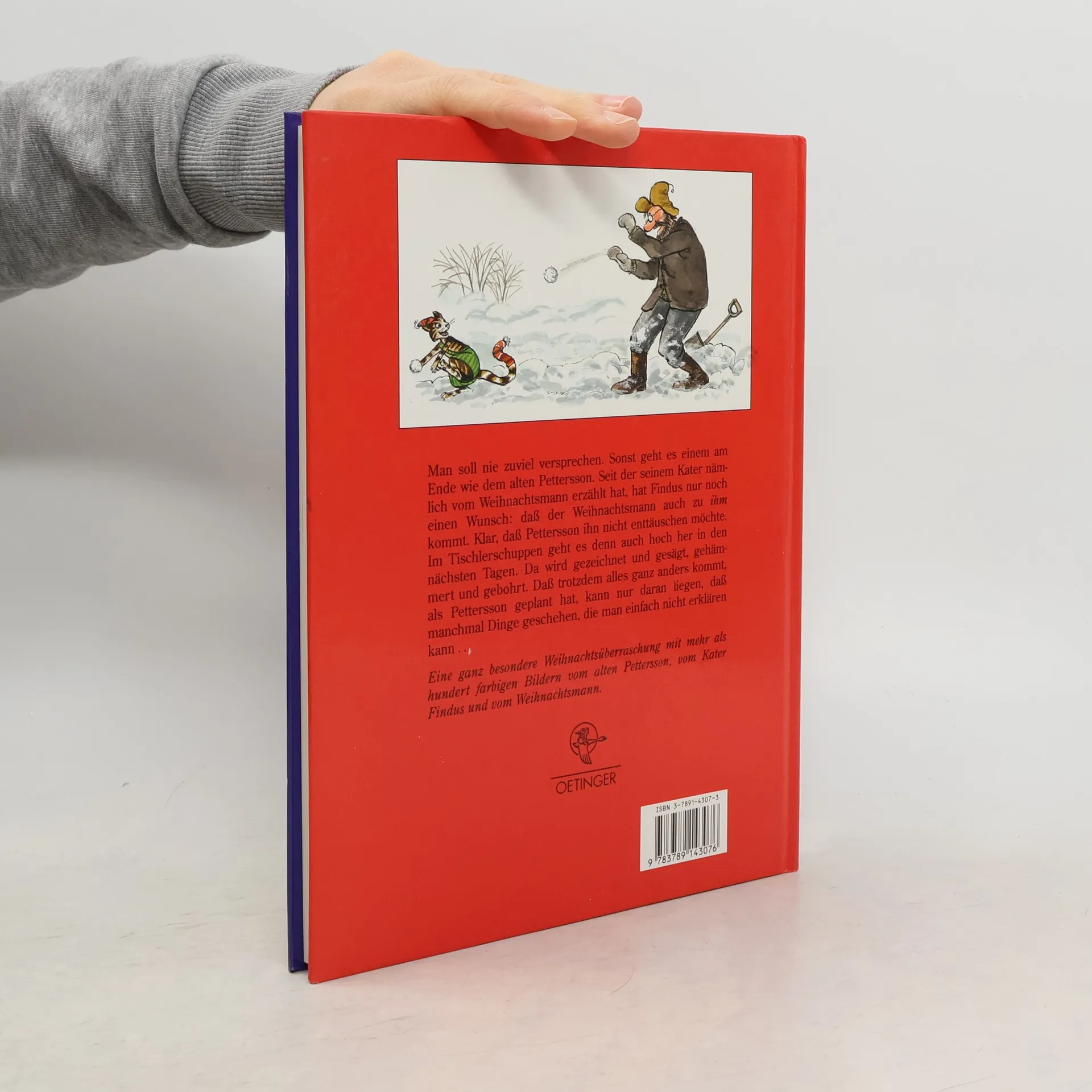 Man soll nie zu viel versprechen. Sonst geht es einem am Ende wie dem alten Pettersson. Seit der seinem Kater nämlich vom Weihnachtsmann erzählt hat, hat Findus nur noch einen Wunsch: dass der Weihnachtsmann auch zu ihm kommt. Klar, dass Pettersson ihn nicht enttäuschen möchte. Im Tischlerschuppen geht es denn auch hoch her in den nächsten Tagen. Da wird gezeichnet und gesägt, gehämmert und gebohrt. Dass trotzdem alles ganz anders kommt, als Pettersson geplant hat, kann nur daran liegen, dass manchmal Dinge geschehen, die man einfach nicht erklären kann …Eine ganz besondere Weihnachtsüberraschung mit mehr als hundert farbigen Bildern vom alten Pettersson, vom Kater Findus und vom Weihnachtsmann.