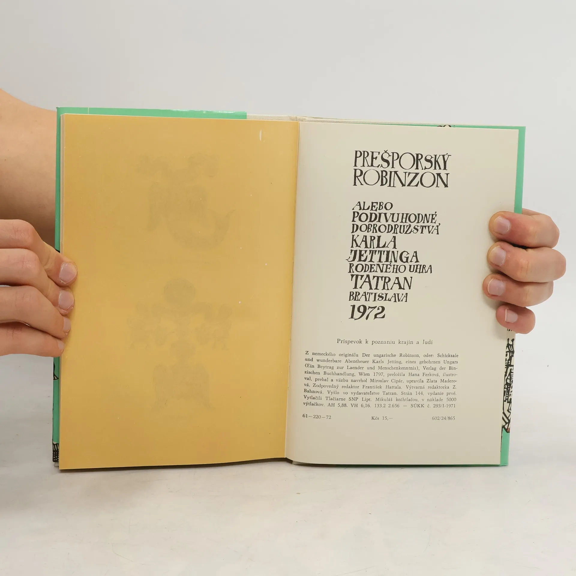Dobrodružný cestopis bratislavského rodáka, úradníka, cestovateľa a diplomata, známeho ako bratislavský Robinson. Prvé vydanie. Cena knihy v čase vydania: 15.- Kčs.