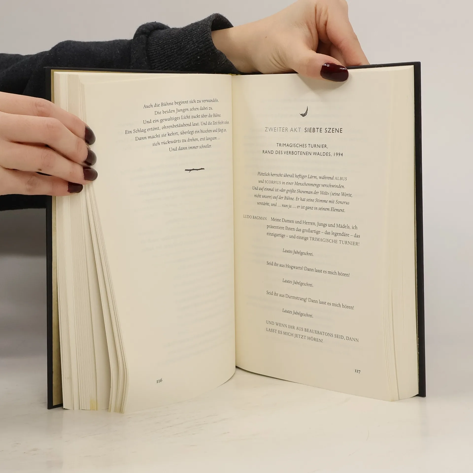 Die achte Geschichte. Neunzehn Jahre später. Das Skript zum Theaterstück! Harry Potter und das verwunschene Kind, basierend auf einer neuen Geschichte von J. K. Rowling, John Tiffany und Jack Thorne, ist ein neues Theaterstück von Jack Thorne. Es erzählt die achte Geschichte in der Harry-Potter-Serie und ist gleichzeitig die erste offizielle Harry-Potter-Geschichte, die auf der Bühne präsentiert wird. Das Stück feierte am 30. Juli 2016 im Londoner West End Premiere. Es war nie leicht, Harry Potter zu sein – und jetzt, als überarbeiteter Angestellter des Zaubereiministeriums, Ehemann und Vater von drei Schulkindern, ist sein Leben nicht gerade einfacher geworden. Während Harrys Vergangenheit ihn immer wieder einholt, kämpft sein Sohn Albus mit dem gewaltigen Vermächtnis seiner Familie, mit dem er nichts zu tun haben will. Als Vergangenheit und Gegenwart auf unheilvolle Weise miteinander verschmelzen, gelangen Harry und Albus zu einer bitteren Erkenntnis: Das Dunkle kommt oft von dort, wo man es am wenigsten erwartet.