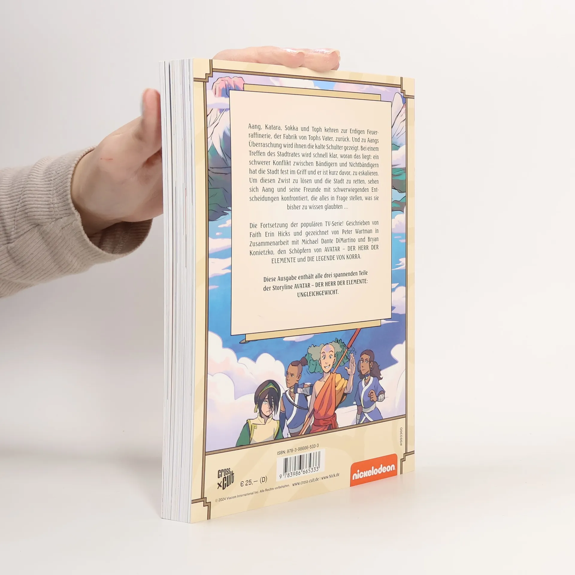 Aang, Katara, Sokka und Toph kehren zur Erdigen Feuerraffinerie zurück, wo ein Konflikt zwischen Bändigern und Nichtbändigern herrscht. Um die Stadt zu retten, müssen sie schwierige Entscheidungen treffen, die ihr bisheriges Wissen infrage stellen. Die Fortsetzung der beliebten TV-Serie, geschrieben von Faith Erin Hicks.