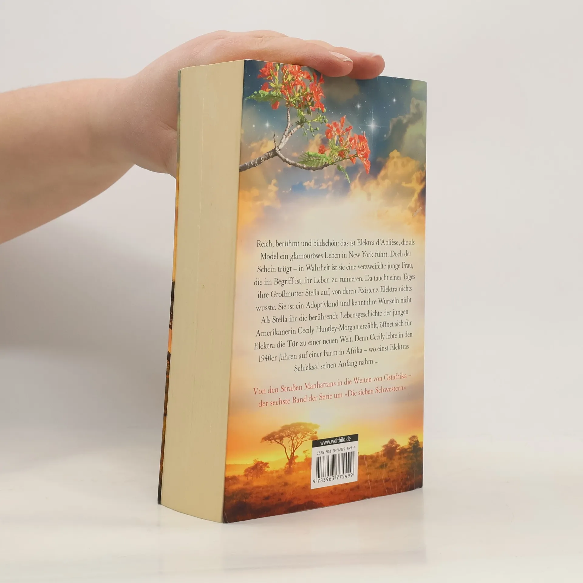 Die große Saga von Bestsellerautorin Lucinda Riley. Reich, berühmt und bildschön: das ist Elektra d’Aplièse, die als Model ein glamouröses Leben in New York führt. Doch der Schein trügt – in Wahrheit ist sie eine verzweifelte junge Frau, die im Begriff ist, ihr Leben zu ruinieren. Da taucht eines Tages ihre Großmutter Stella auf, von deren Existenz Elektra nichts wusste. Sie ist ein Adoptivkind und kennt ihre Wurzeln nicht. Als Stella ihr die berührende Lebensgeschichte der jungen Amerikanerin Cecily Huntley-Morgan erzählt, öffnet sich für Elektra die Tür zu einer neuen Welt. Denn Cecily lebte in den 1940er Jahren auf einer Farm in Afrika – wo einst Elektras Schicksal seinen Anfang nahm … Der sechste Band aus der Bestseller-Serie um die sieben Schwestern.