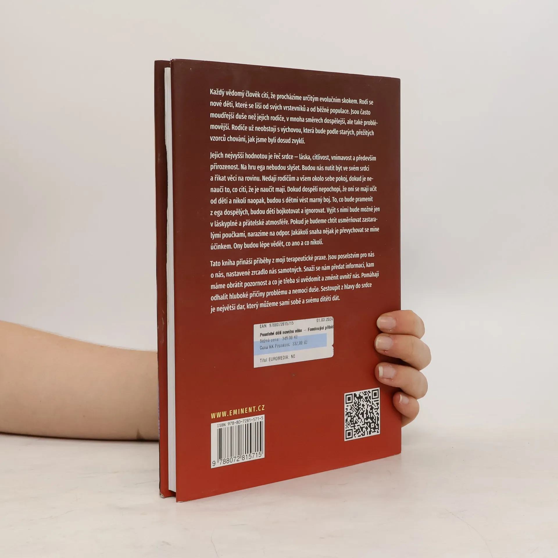 Fascinující příběhy o věcech mezi nebem a zemí Každý vědomý člověk cítí, že procházíme určitým evolučním skokem. Rodí se nové děti, které se liší od svých vrstevníků a od běžné populace. Jsou často moudřejší duše než jejich rodiče, v mnoha směrech dospělejší, moudřejší, ale také problémovější. Rodiče už neobstojí s výchovou, která bude podle starých, přežitých vzorců chování, jak jsme byli dosud zvyklí. Jejich nejvyšší hodnotou je řeč srdce – láska, citlivost, vnímavost a především přirozenost. Na hru ega nebudou slyšet. Budou nás nutit být ve svém srdci a říkat věci na rovinu. Nedají rodičům a všem okolo sebe pokoj, dokud je nenaučí to, co cítí, že je naučit mají. Dokud dospělí nepochopí, že oni se mají učit od dětí, nikoliv naopak, budou s dětmi vést marný boj. To, co bude pramenit z ega dospělých, budou děti bojkotovat a ignorovat. Vyjít s nimi bude možné jen v láskyplné a přátelské atmosféře. Pokud je budeme chtít usměrňovat zastaralými poučkami, narazíme na odpor. Jakákoliv snaha je nějak převychovat se mine účinkem. Ony budou lépe vědět, co ano a co nikoli. Tato kniha přináší příběhy z mojí terapeutické praxe. Jsou poselstvím pro nás o nás, nastavené zrcadlo nás samotných. Snaží se nám předat informaci, kam máme obrátit pozornost a co je třeba si uvědomit a změnit uvnitř nás. Pomáhají odhalit hluboké příčiny problému a nemoci duše.
