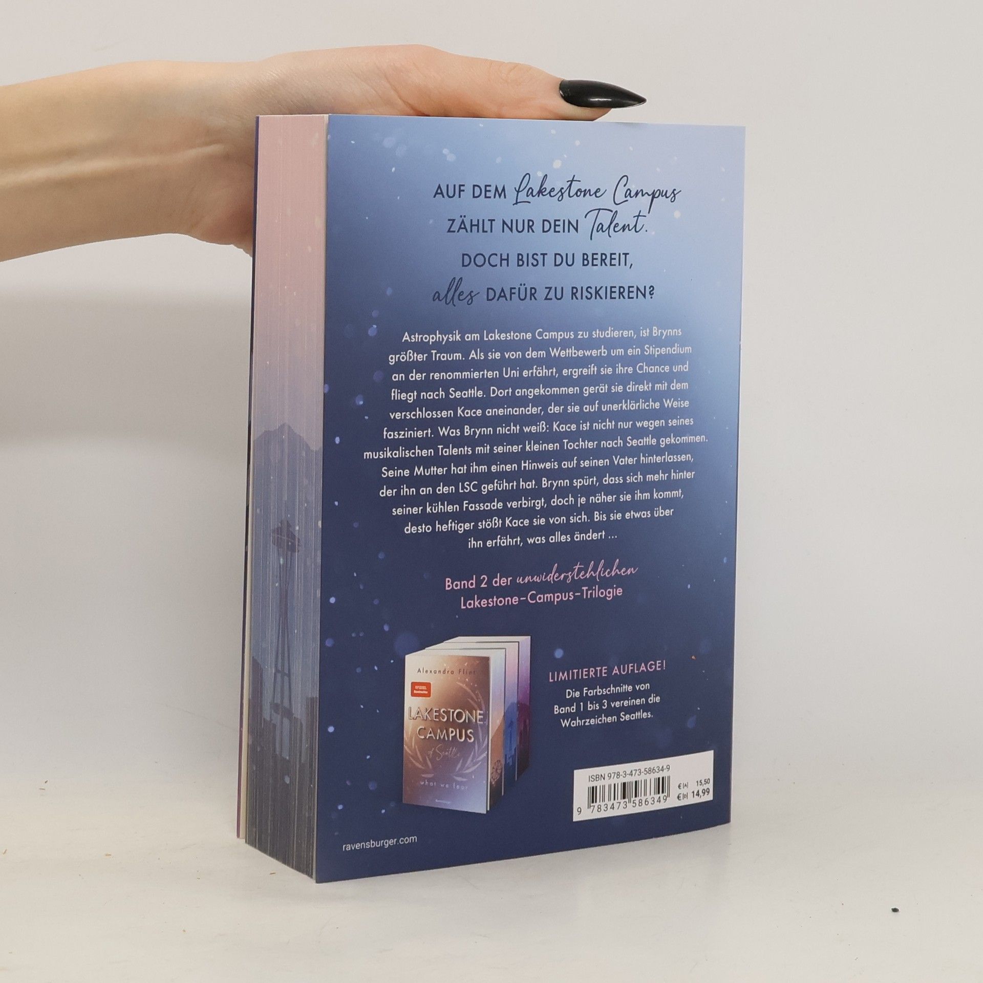 Brynns Traum, Astrophysik am Lakestone Campus zu studieren, wird durch einen Stipendienwettbewerb greifbar. In Seattle trifft sie auf Kace, dessen Geheimnisse ihre Anziehung verstärken. Doch je näher sie ihm kommt, desto mehr zieht er sich zurück. Band 2 der fesselnden New-Adult-Trilogie von Alexandra Flint.