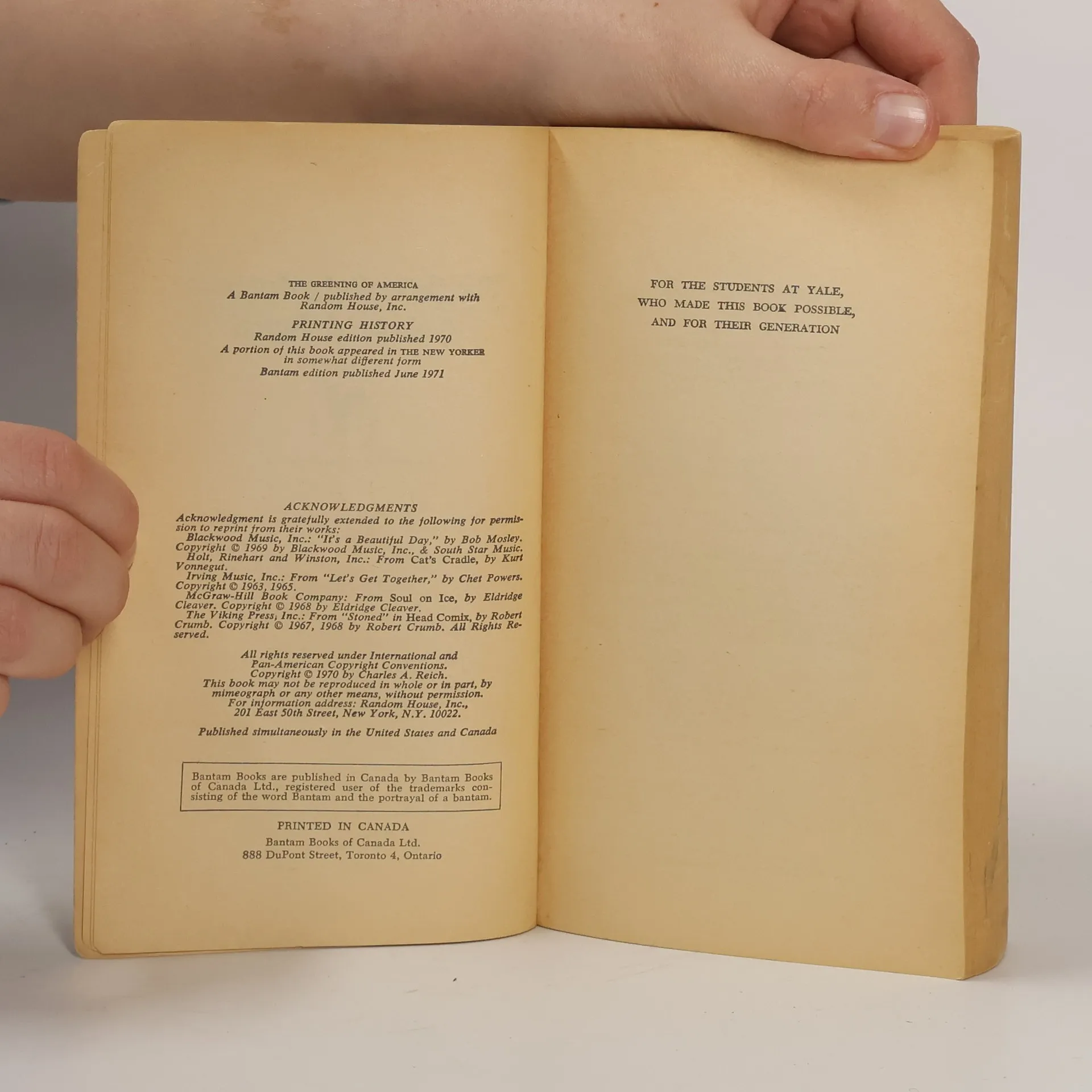 The greening of America, Charles A. Reich