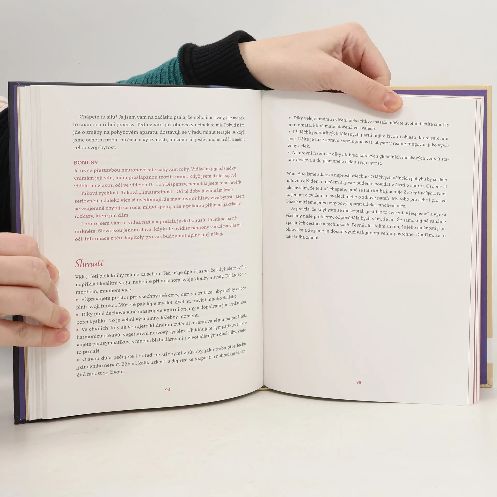 Kniha Z LÁSKY K POHYBU propojuje mnoho faktorů z různorodých medicínských odvětví. Přináší komplpexní pohled na zdraví člověka a předává jej tak, že mu každý snadno porozumí. Laskavou formou ukazuje, jak spolu souvisí nejen jednotlivé části těla, ale i naše psychika, pohyb, nebo dokonce to, jak se oblékáme. Tyto principy si podle praktických návodů rovnou i vyzkoušíte a procítíte na vlastním těle. Až knihu dočtete, bude vám jasné, pro je péče o fyzické tělo tak důležitá pro šťastný život. Budete mít chuť s ní hned začít a zároveň budete vědět jak.